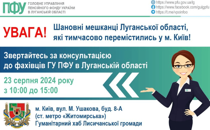 23 августа ВПЛ с Луганщины в столице будет принимать специалист ГУ ПФУ в Луганской области.