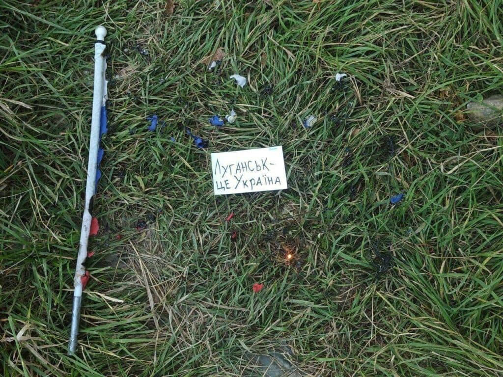 В Луганске активисты движения "Жовта Стрічка" сжигают российские триколоры (фото)