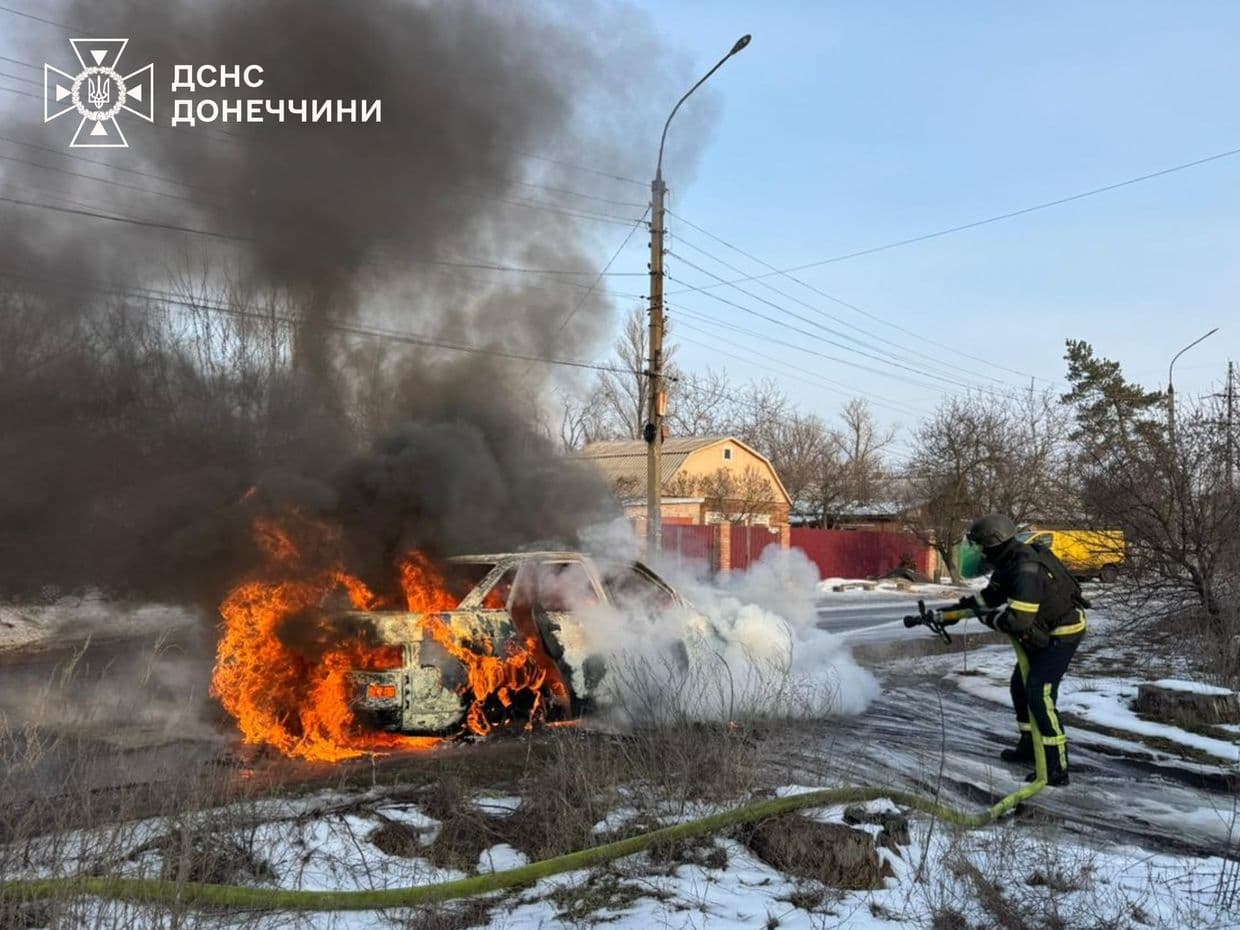 В Славянске Донецкой области горел автомобиль.