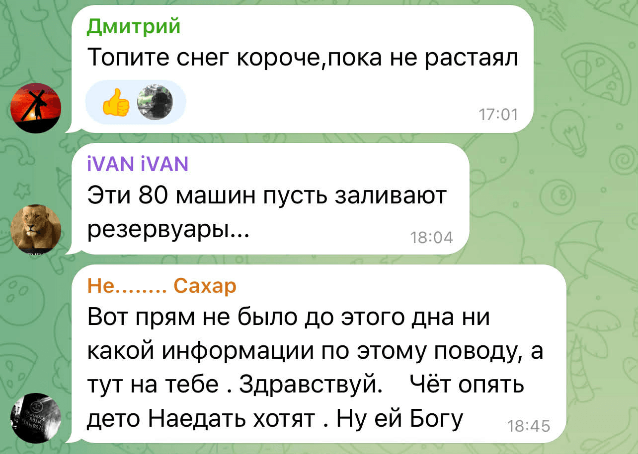 В Телеграм на эту новость отреагировали негативно, комментаторы советуют, что уже нужно «топить снег» и отмечают, что нет доверия этой информации.