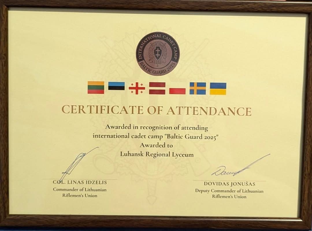 Группа воспитанников Луганского областного лицея с усиленной военно-физической подготовкой вернулась в Украину после участия в Международном кадетском лагере Baltic Guard 2025 в Литовской Республике с 21 по 27 июля.