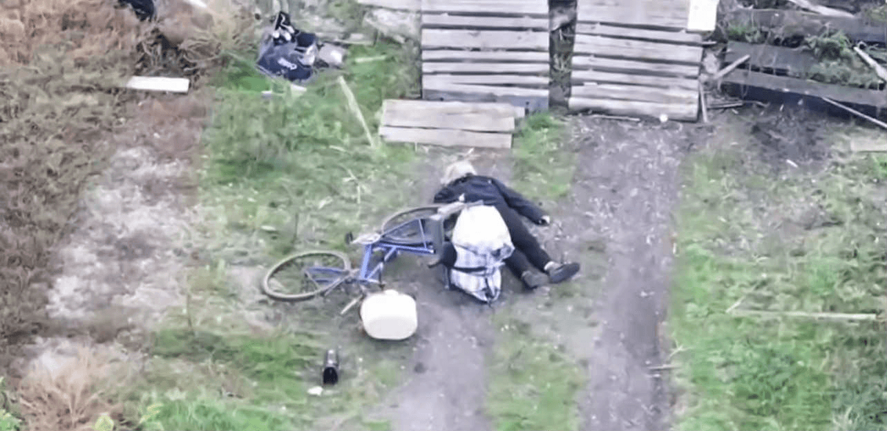 "Мы видим раненую женщину, которая двигалась от центра в направлении района Динас. У нее перебиты ноги. Я даже не представляю, сколько времени она там проведет. Неподалеку от женщины лежит дедушка. За ним мы видим еще одну женщину на велосипеде, которая тоже двигалась из центра, которую просто расстреляли в спину. И мужчина, судя по всему, он, сам того не осознавая, шел навстречу русской засаде, шел на смерть", — говорит Денис Христов.