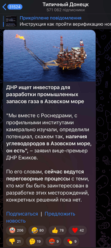 Захватчики непризнанной "днр" ищут "инвестора" для разработки промышленных запасов газа в Азовском море