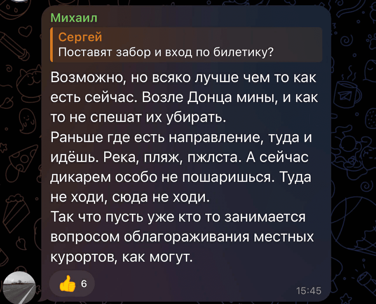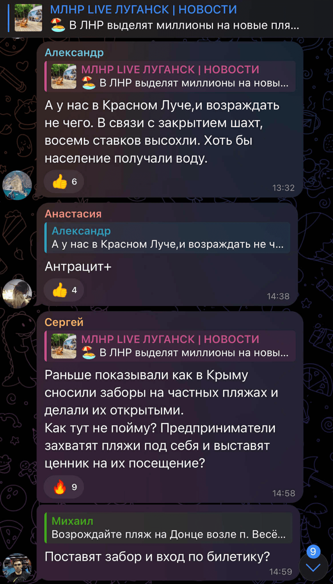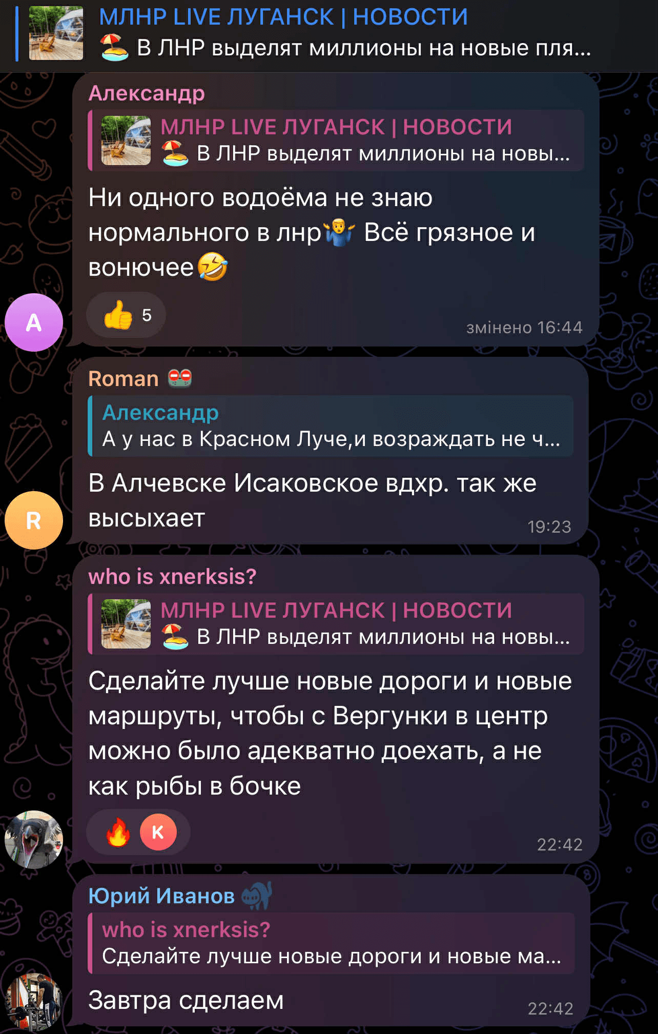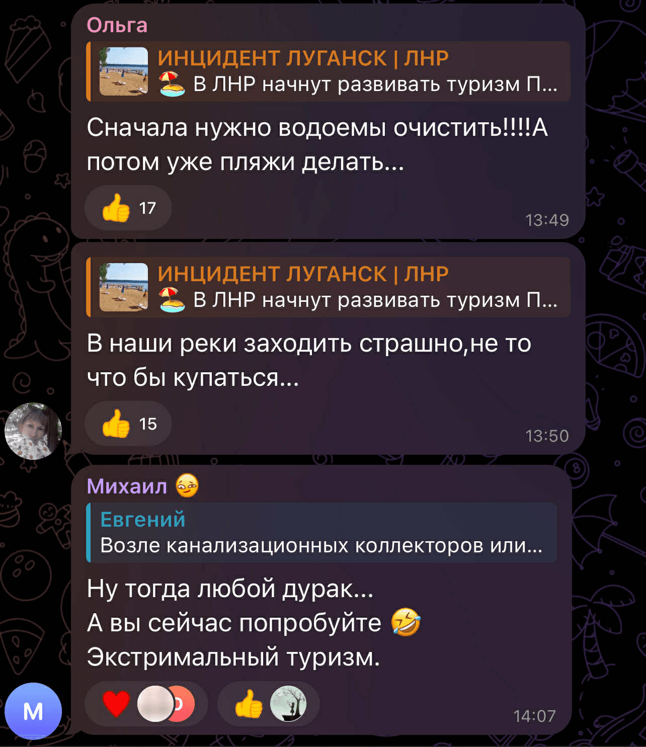 В комментариях к новости отмечают, что возрождать уже нечего, потому что на части оккупированной Луганщины не осталось нормальных водоемов, они пересохли, а пляжи грязные и имеют угрозы в виде мин, и тому подобное.
