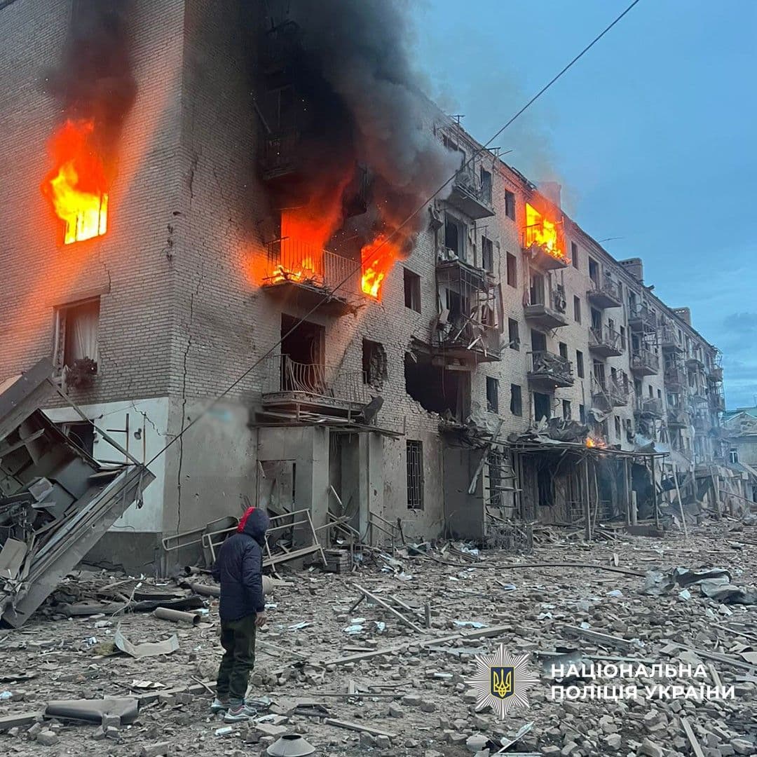 "Поранено 2 цивільних осіб, зокрема хлопчика 2012 року народження. Пошкоджено 39 багатоквартирних будинків, заклад освіти, 2 адмінбудівлі, 2 господарські споруди, 16 цивільних авто", — зазначили у поліції.