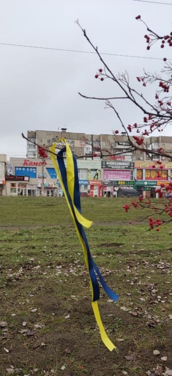 Синьо-жовта символіка знову майорить на вулицях ТОТ Донеччини та Луганщини. Фото: руху спротиву "Жовта Стрічка"
