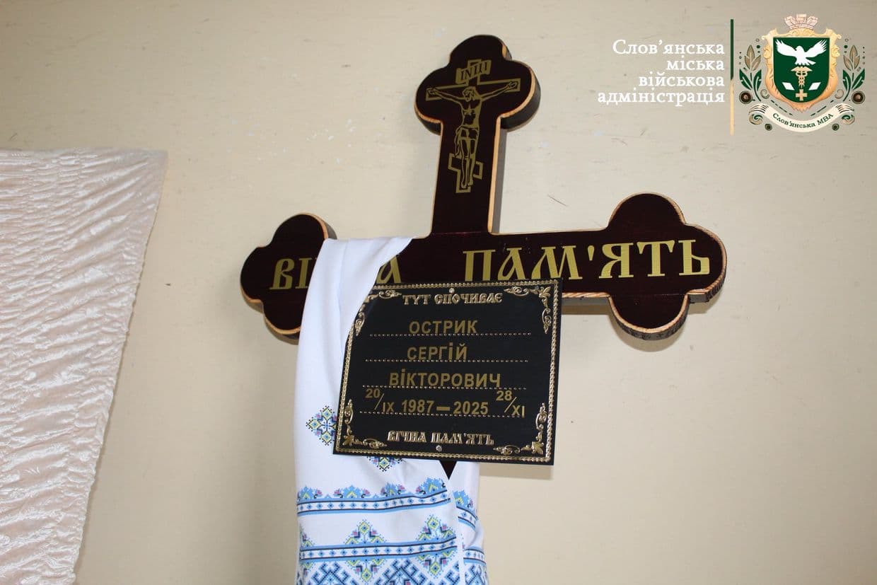У Слов'янську провели в останню путь солдата Сергія Острика — водія автомобільного відділення підвозу боєприпасів танкового батальйону в/ч А 0409. Серце 38-річного чоловіка перестало битися 28 листопада.