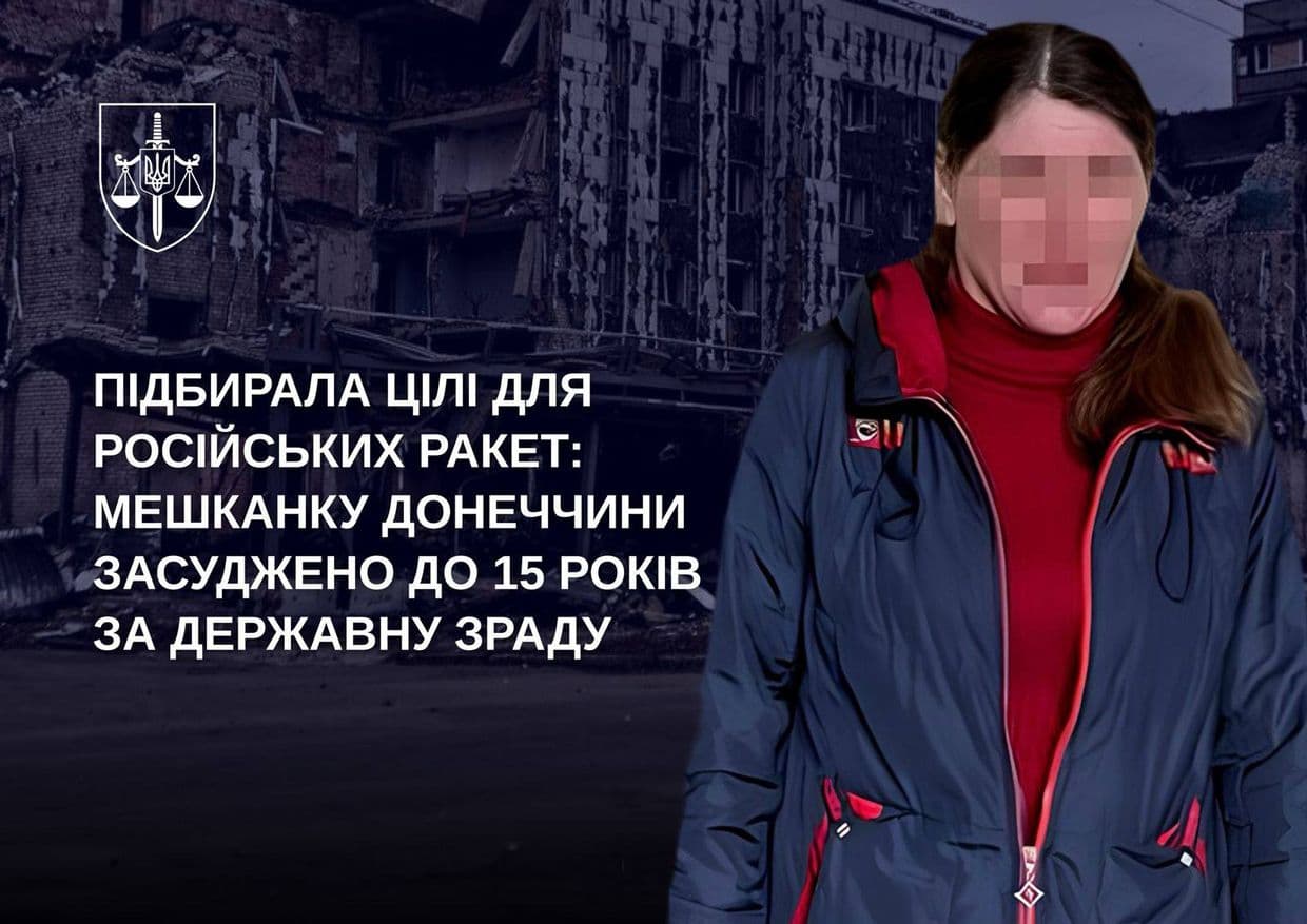 Прокурори домоглися вироку для жінки, яка "зливала" рашистам геолокації опорних пунктів оборони та бойових позицій українських захисників на Покровському напрямку. Суд призначив їй 15 років позбавлення волі з конфіскацією майна за державну зраду в умовах воєнного стану за ч. 2 ст. 111 Кримінального кодексу України.