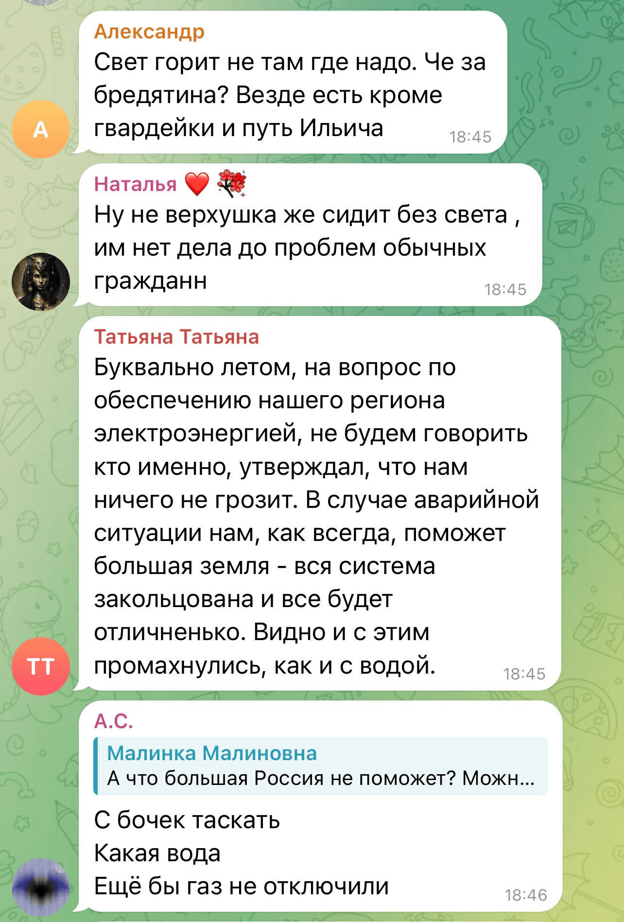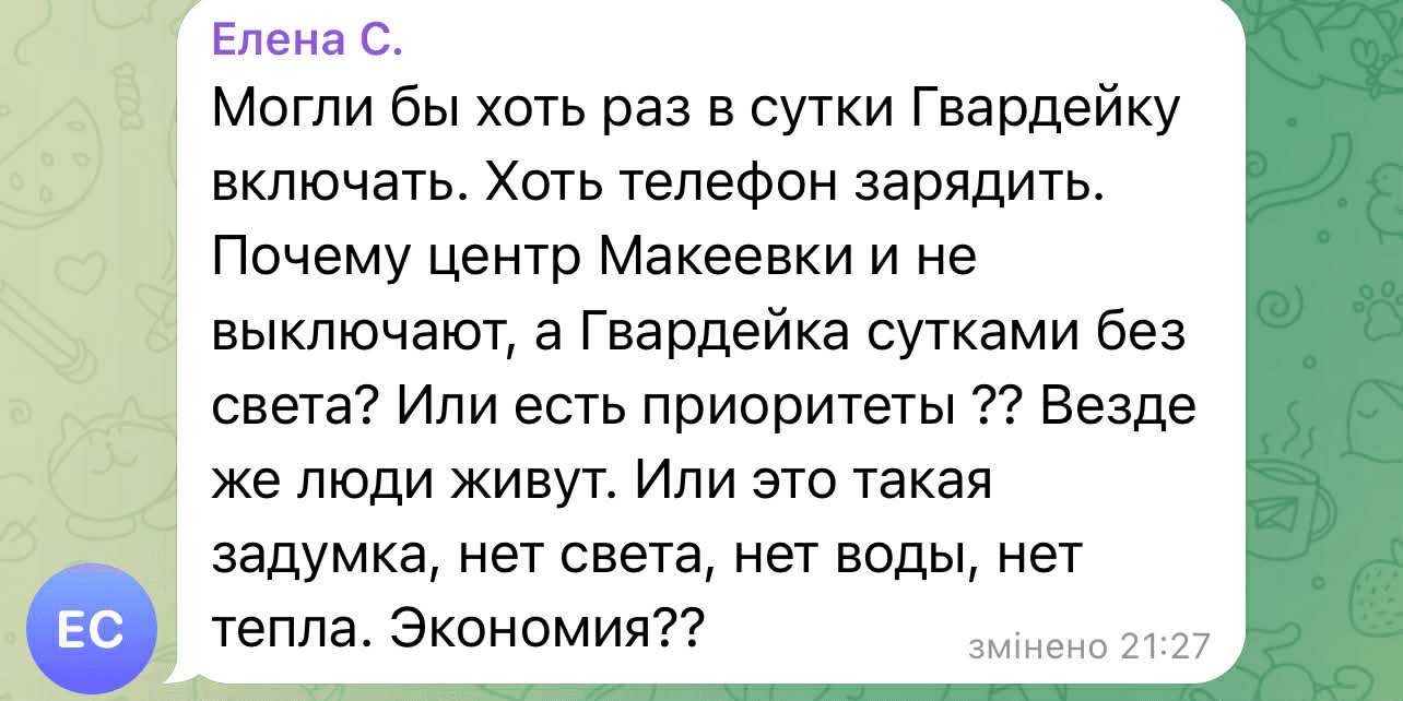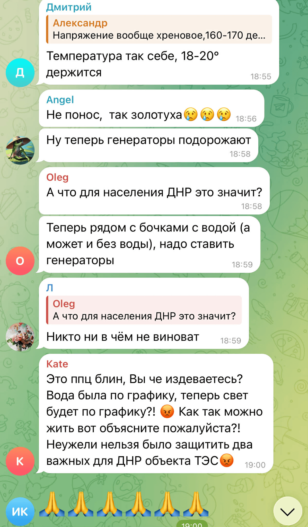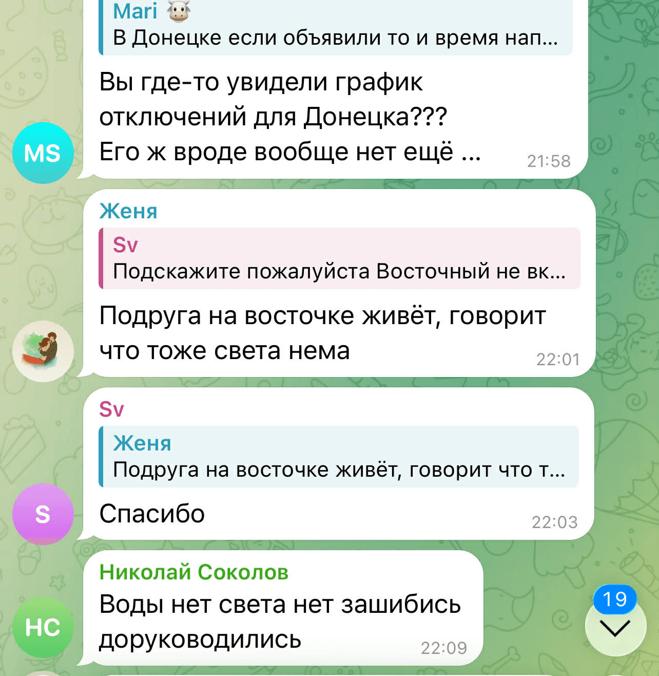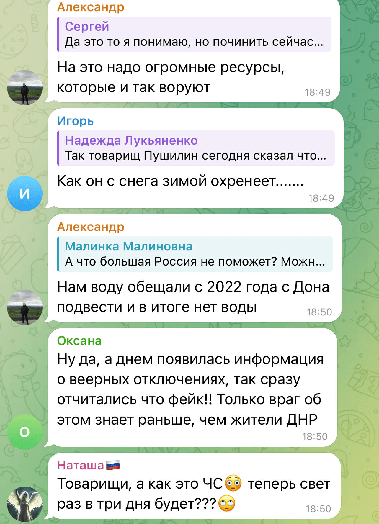 Також коментатори в Телеграм припускають, що ситуація на ТОТ Донеччини може дійти до того, що "світло також будуть подавати за графіками, як і воду", як це вже практикують окупанти.
