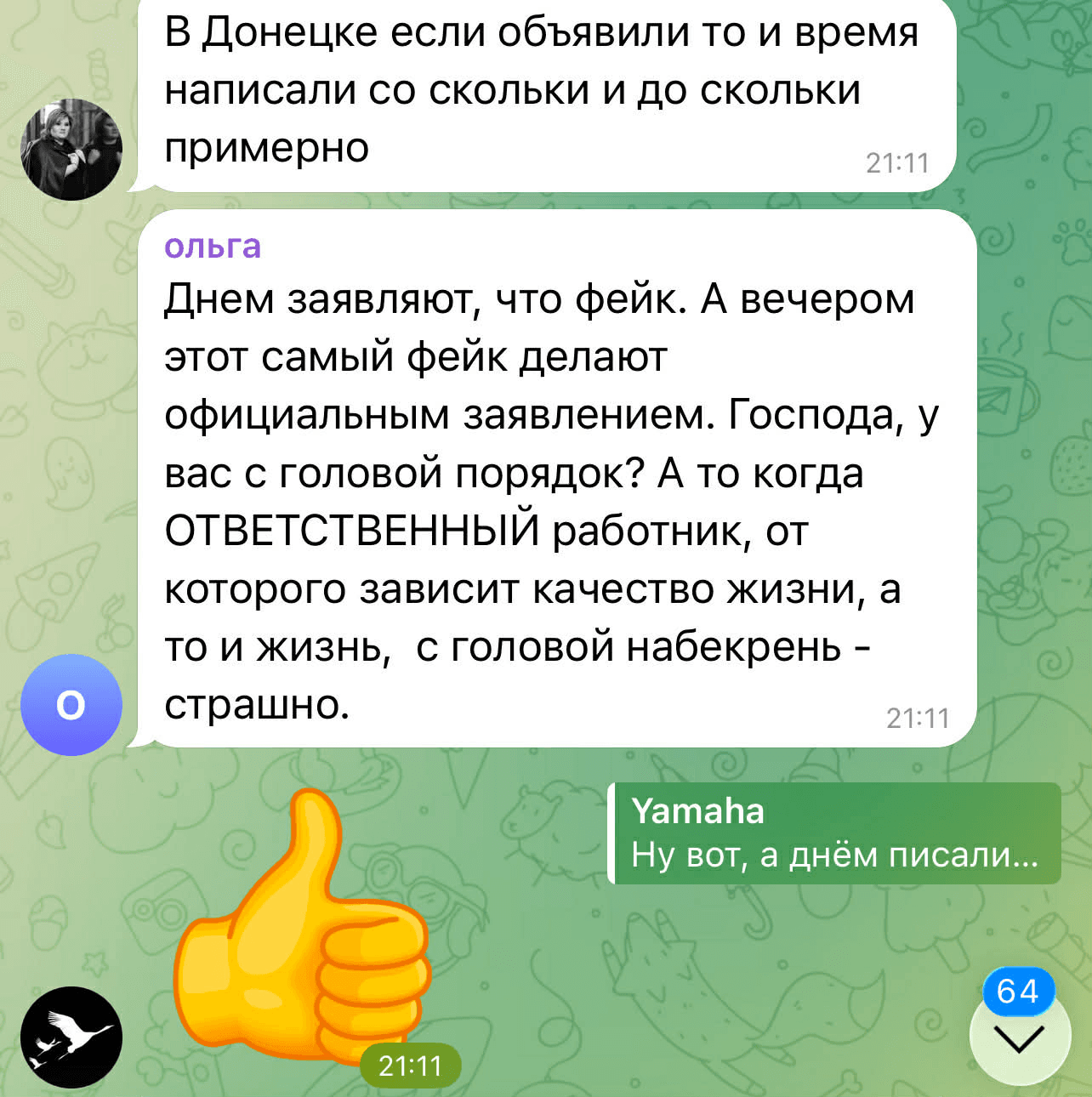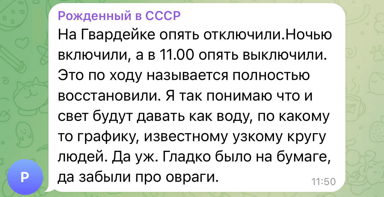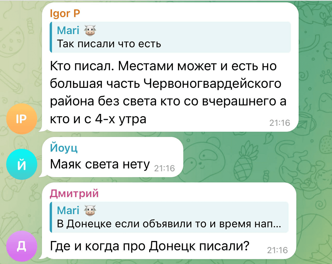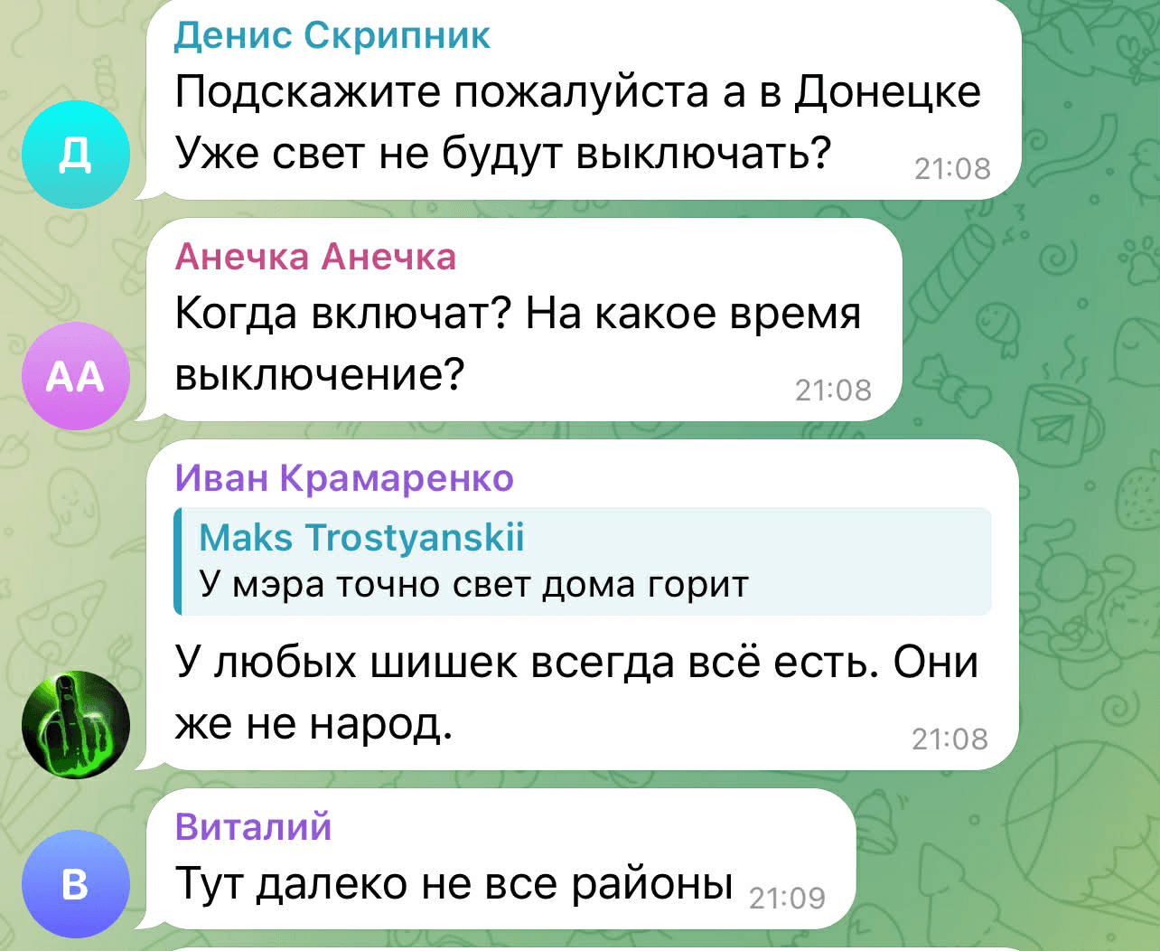 "Тепер і світло, як воду будуть давати за графіками": в окупованому Донецьку обговорюють режим ЧС та відключення світла