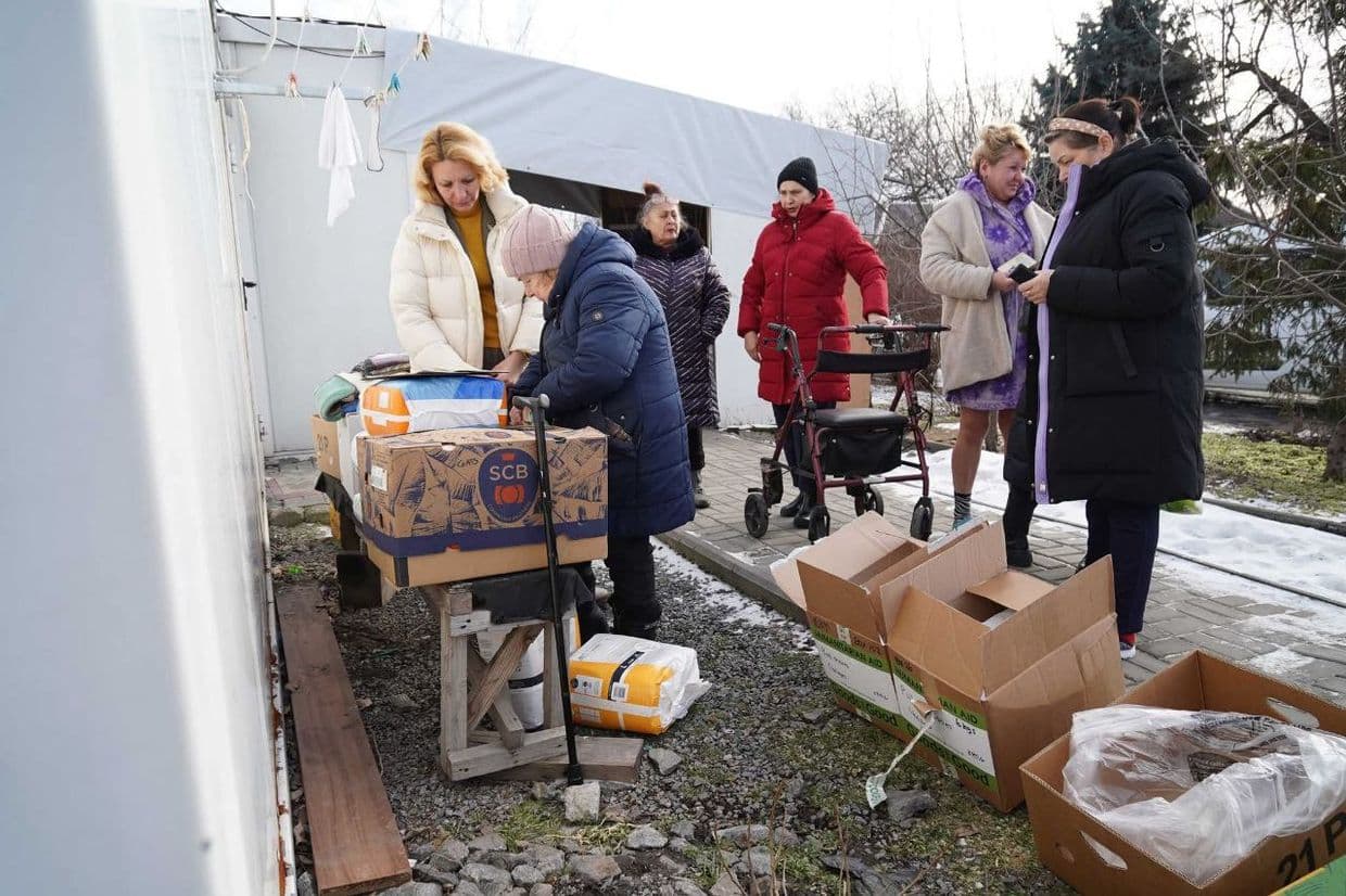 Теплі речі від благодійників одержали луганці, які мешкають у модульному містечку в Дніпрі, 11 лютого 2026 року. Фото: Facebook/Олексій Харченко