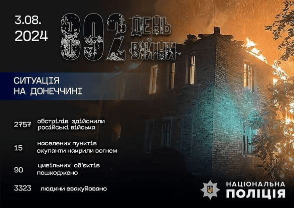 Під удар потрапили 15 населених пунктів: міста Костянтинівка, Мирноград, Новогродівка, Торецьк, Українськ, селища Курахівка, Новоекономічне, Райгородок, села Берестки, Зоря, Зоряне, Катеринівка, Миколаївка, Миролюбівка, Романівка.