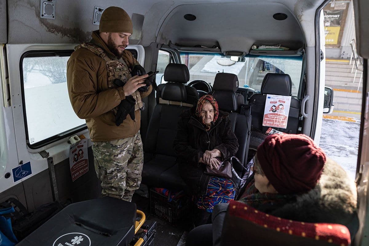Евакуація з Дружківки, лютий 2026 року. Фото: Diego Herrera/Anadolu Agency