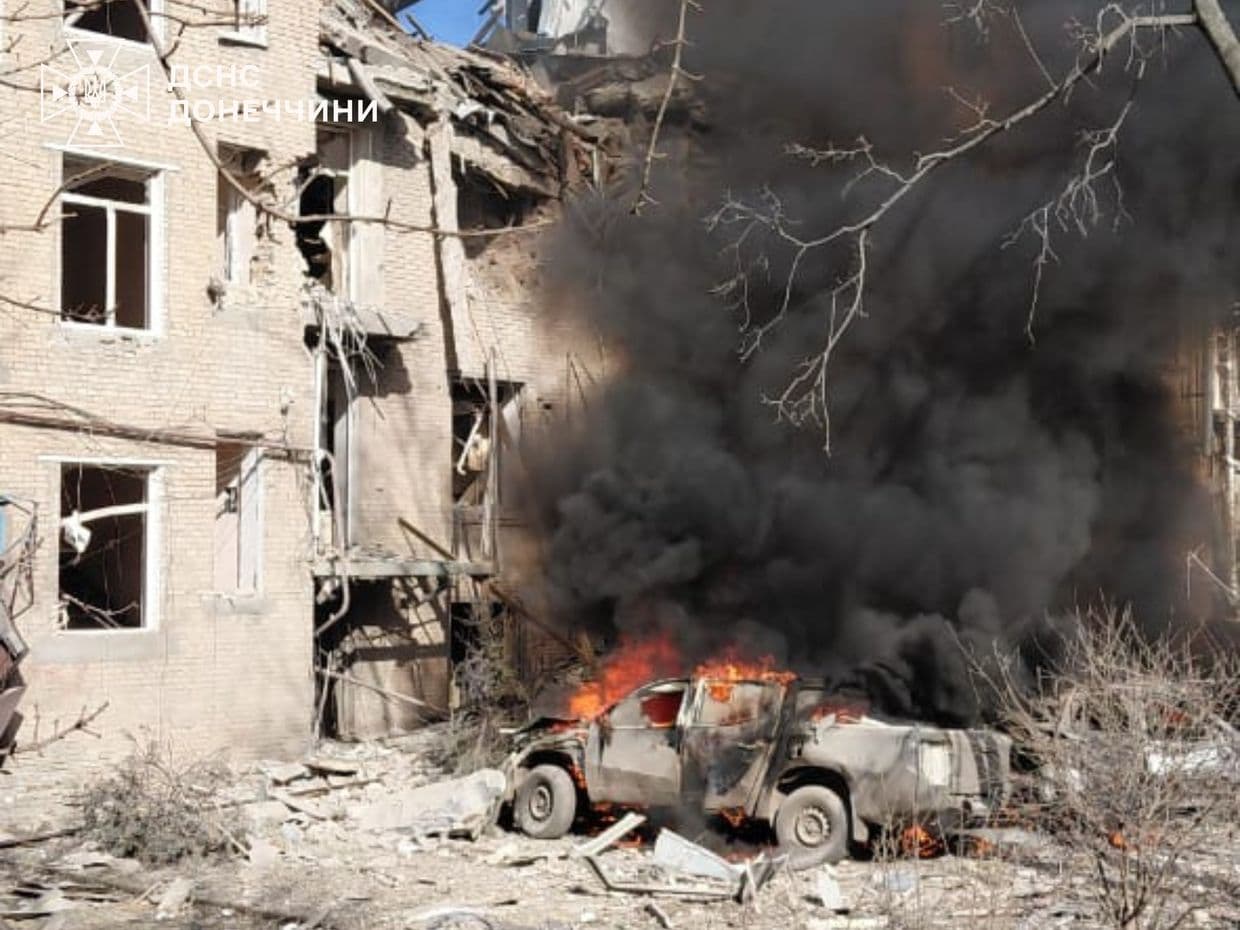 Ліквідація наслідків російського удару по Дружківці 2 березня 2026 року. Фото: ДСНС Донеччини