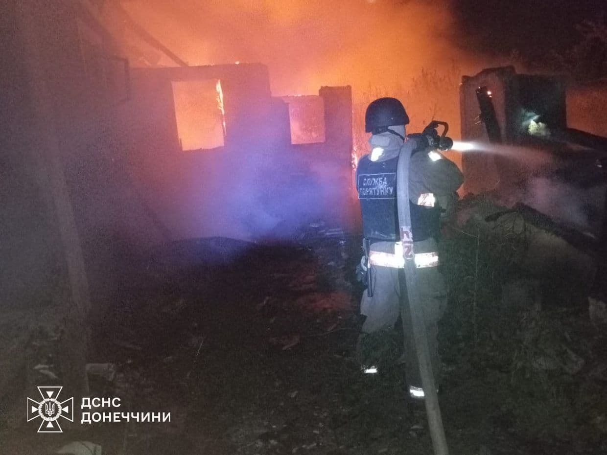 Добропілля: ворог обстріляв приватний житловий сектор — виникли пожежі житлового будинку, гаража та літньої кухні. Надзвичайники локалізували загоряння на площі 95 кв. м, але через повторні обстріли ліквідацію довелося припинити.