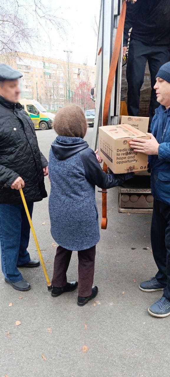 Жителі Краматорська отримують допомогу від Global Empowerment Mission, яка стала можливою завдяки системній співпраці Гуманітарного штабу КМР із GEM.