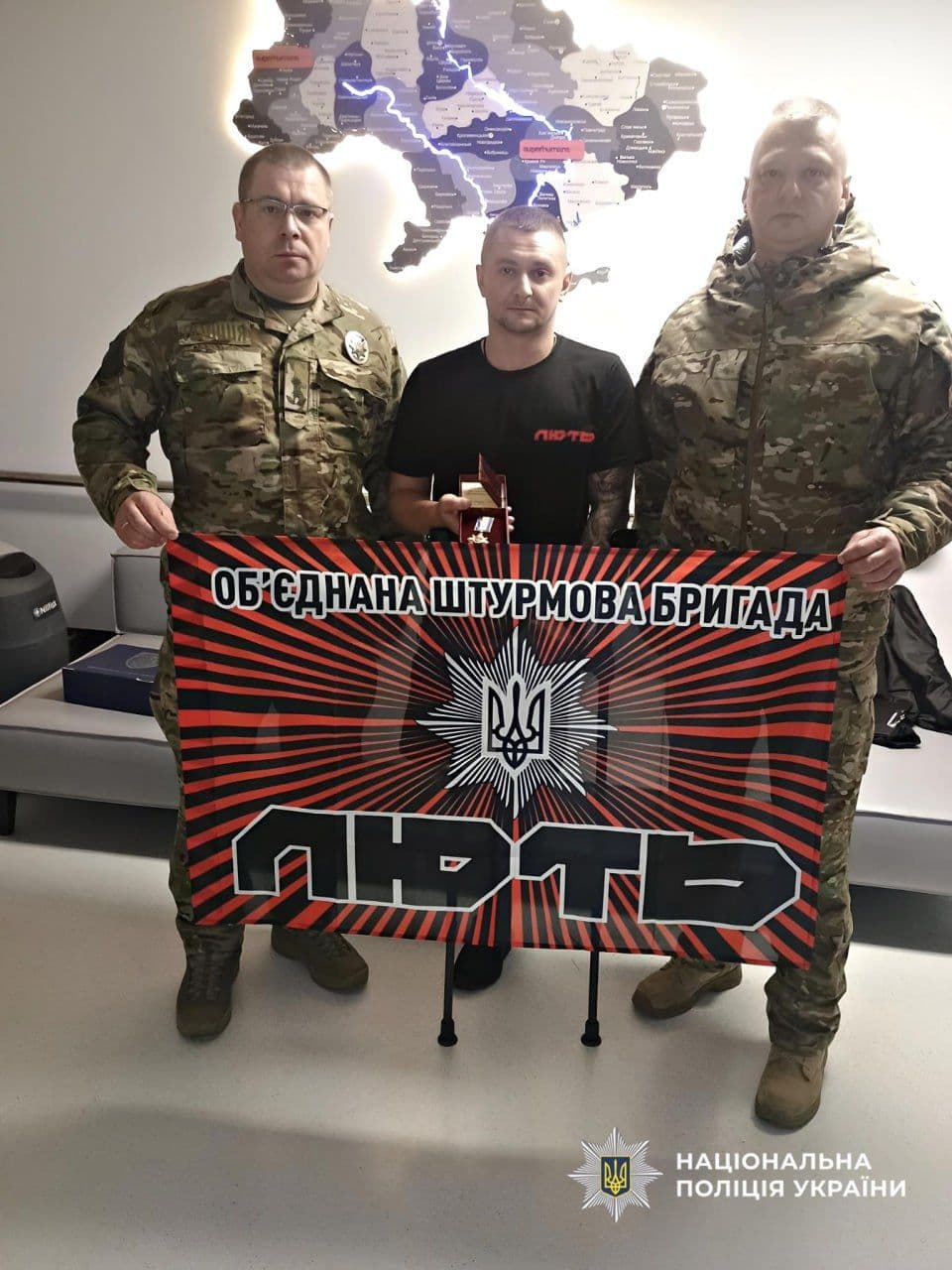 Нагороди обом воїнам передали помічник начальника Департаменту поліції особливого призначення "Об’єднана штурмова бригада Національної поліції "Лють" полковник поліції В'ячеслав Вусінський та начальник сектору організації соціальної роботи Управління кадрового забезпечення поліції Львівщини підполковник поліції Степан Лигор.