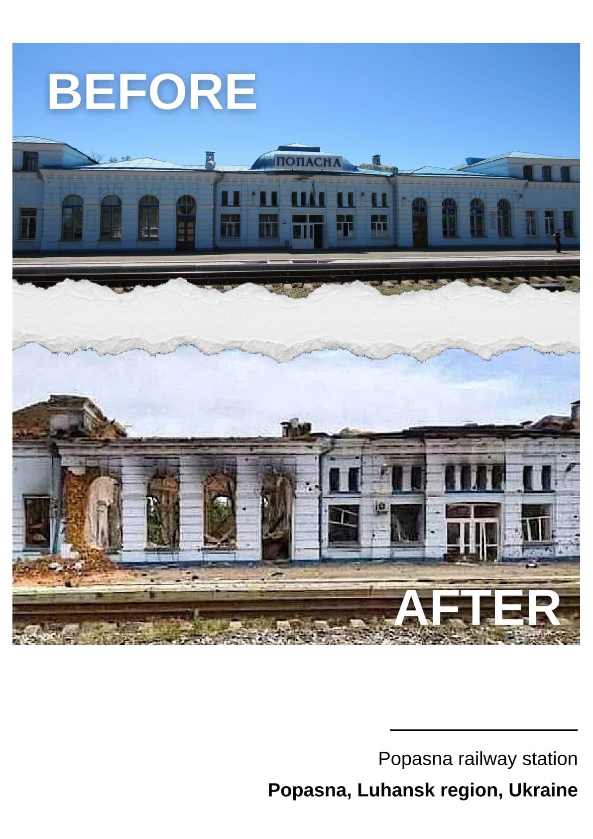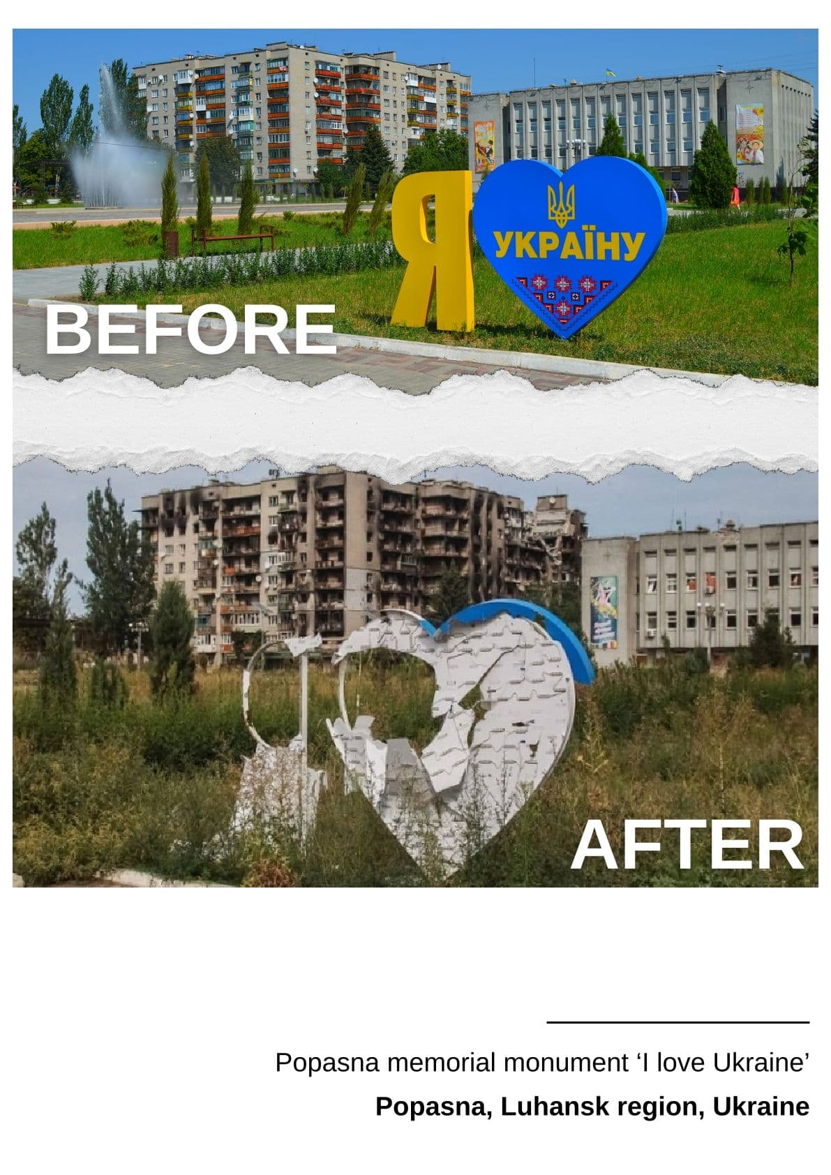 Виставка поєднує фотографії "до" та "після" місць, які були близькі кожному мешканцю Луганської області.