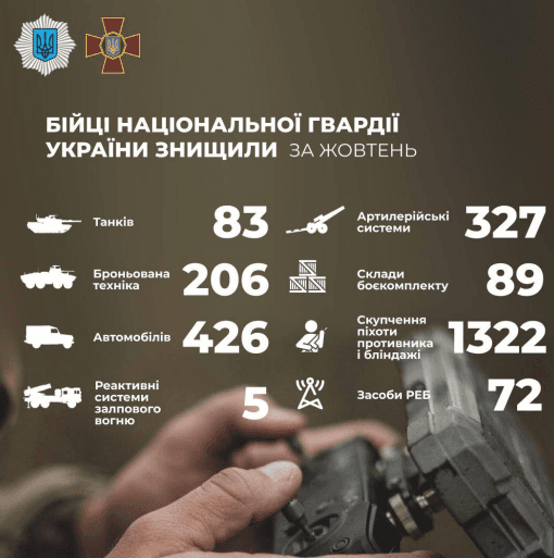 У Нацгвардії розповіли про втрати окупантів за жовтень