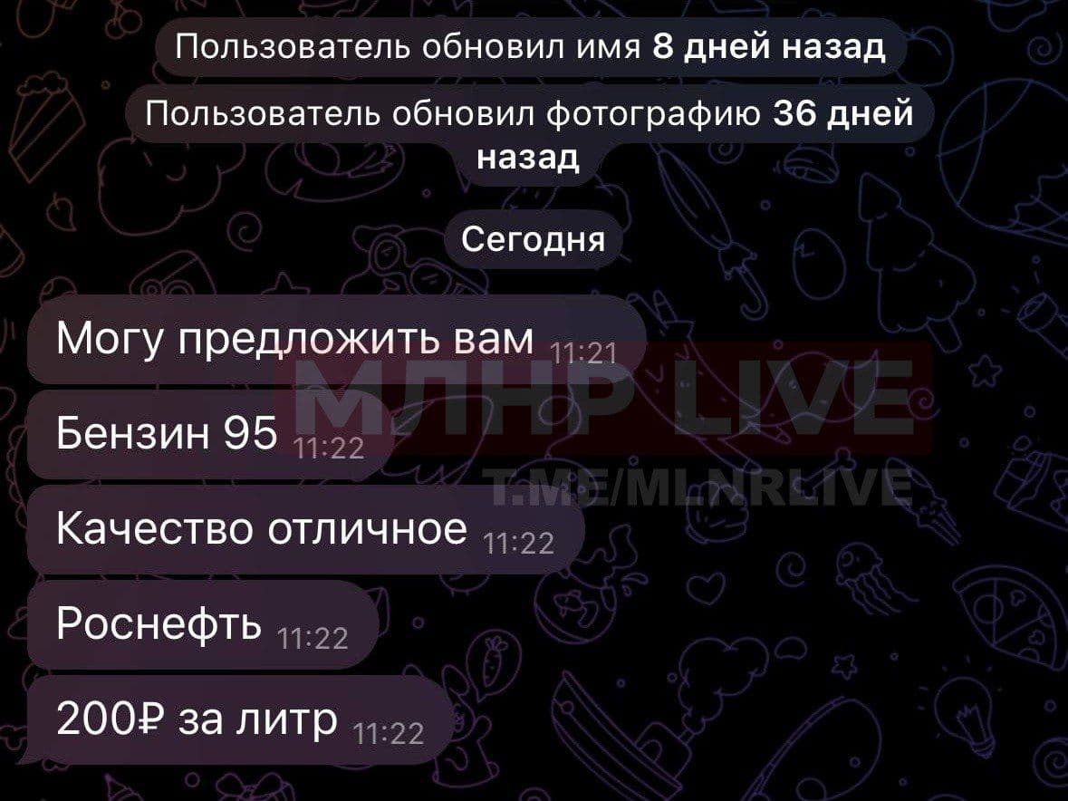 Так в групі mlnrlive в Телеграм повідомляють, що "луганські перекупи зовсім ошаліли і пропонують бензин по 200 рублів за літр".