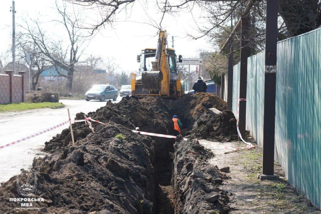 Як розповів головний інженер КП «Покровськводоканал» Максим Вакуленко, роботи частково виконуються методом прокладання водопроводу підземним способом через дорогу з заміною сталевого трубопроводу на поліетиленовий.