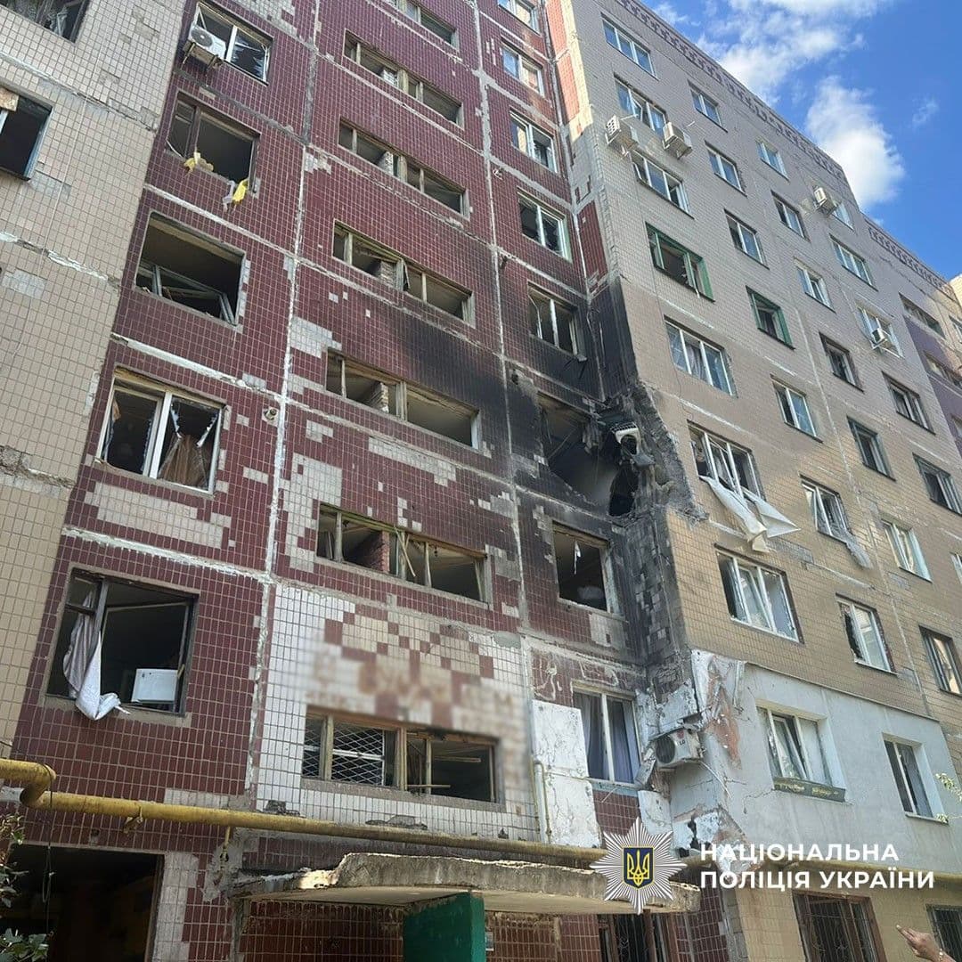 9 поранених у Дружківці, яку ворог атакував 11 дронами "Герань-3", "Гербера" та FPV. Пошкоджено 2 багатоквартирних будинки, магазин, гараж, 7 цивільних авто, автобус, трактор.