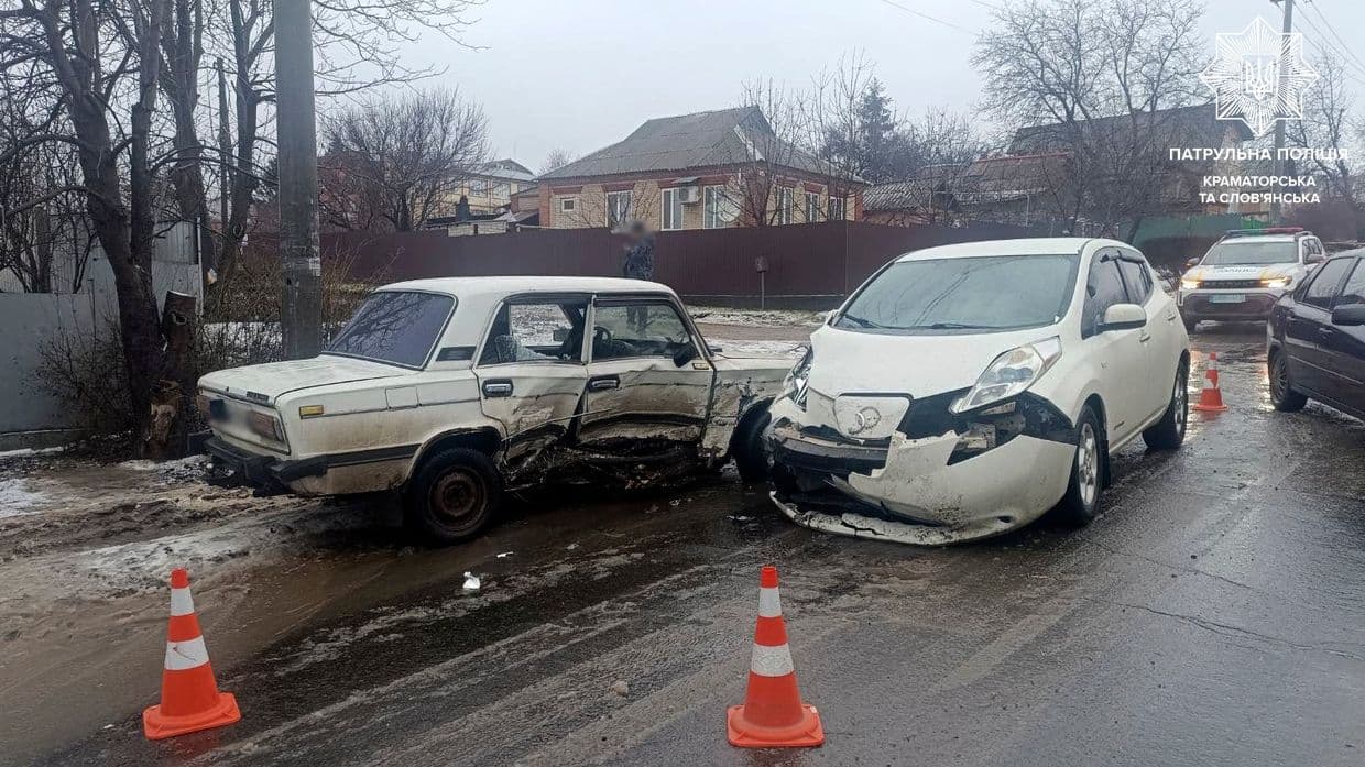 ДТП у Слов'янську 26 лютого 2026 року. Фото: Патрульна поліція Краматорська та Слов'янська