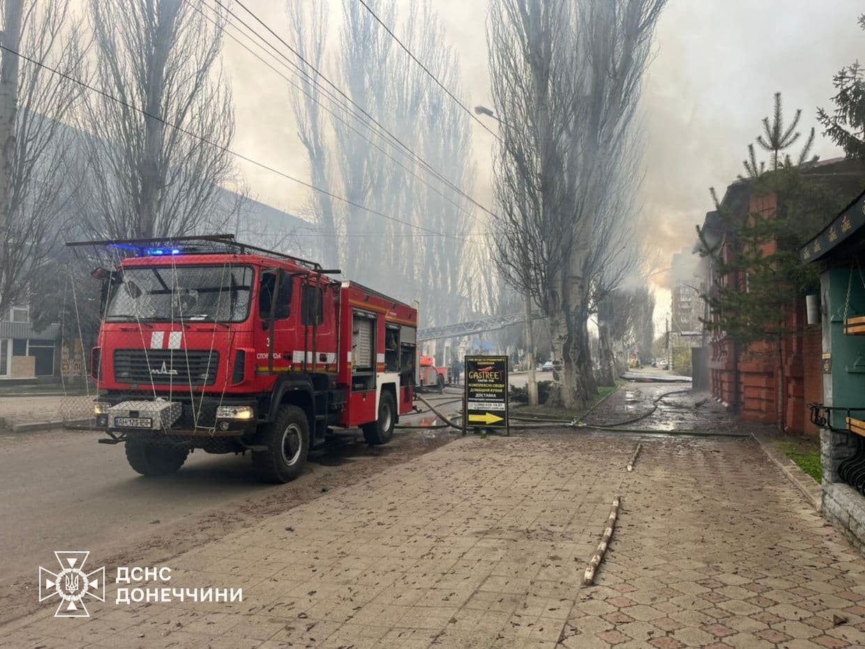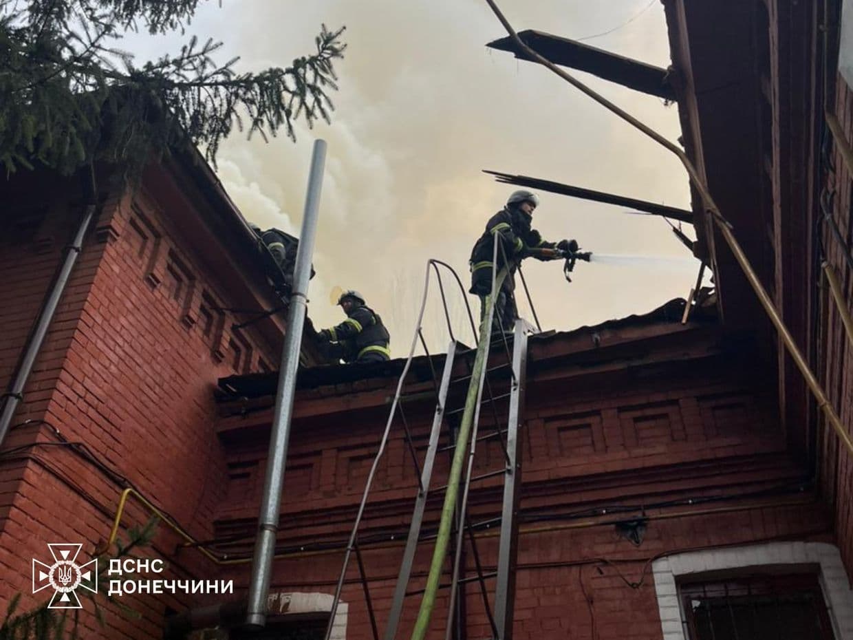 У Слов'янську, попри загрозу повторних обстрілів, вогнеборці погасили масштабну пожежу адмінбудівлі (фото)