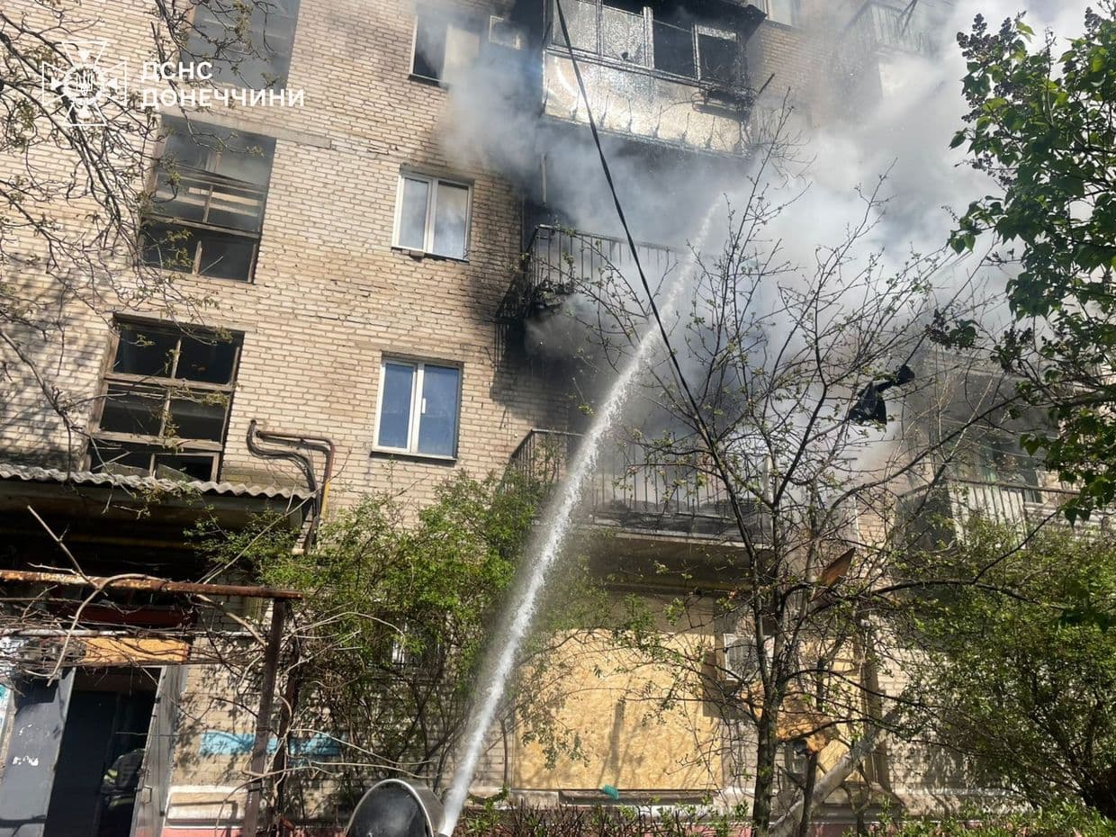 У Слов'янську вогнеборці гасили пожежу в 5-поверхівці під загрозою обстрілу (фото)