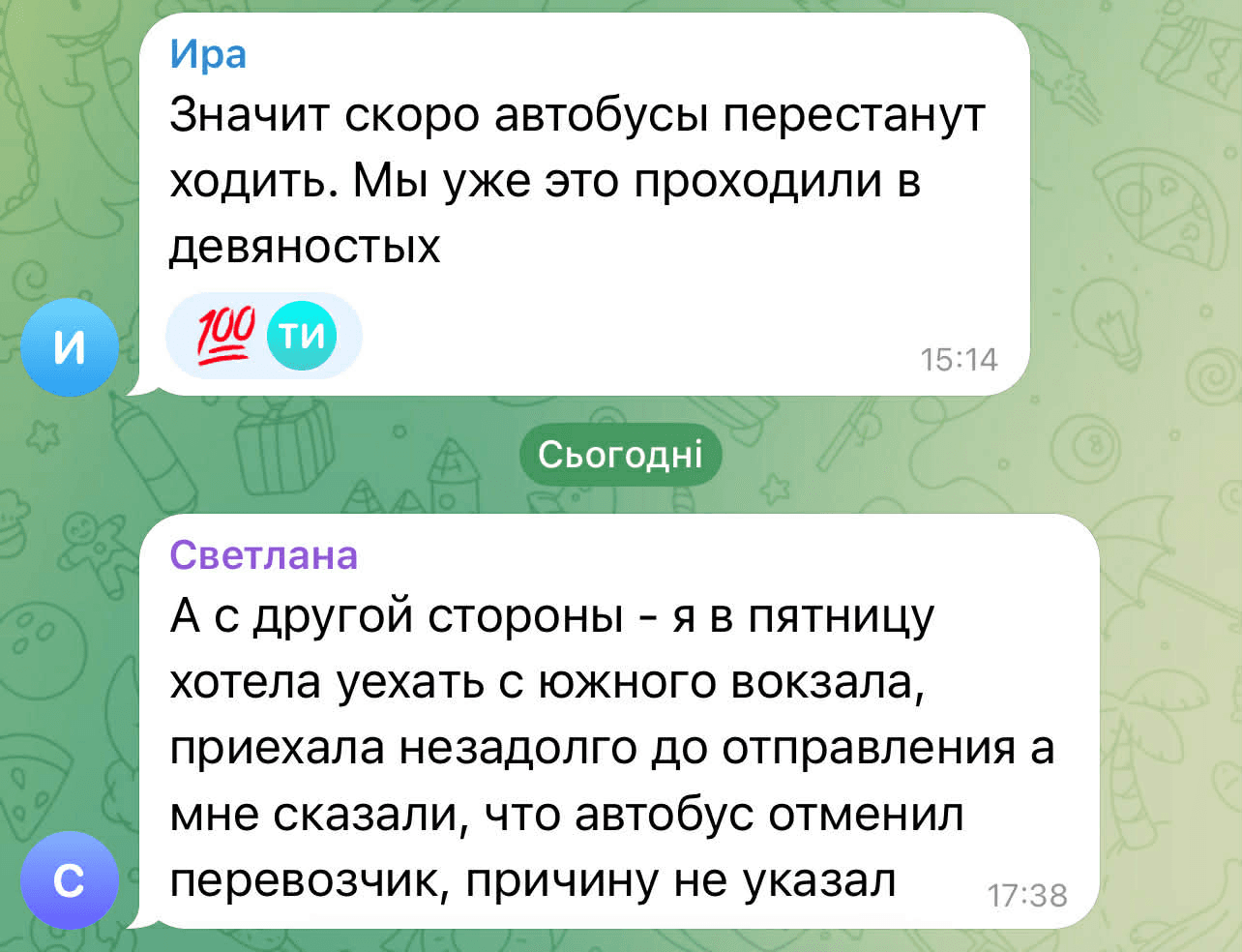 В коментарях до цієї новини в Телеграм люди пишуть, що на ТОТ Донеччини є проблеми з "перевізниками", люди бояться, що автобуси взагалі перестануть ходити.