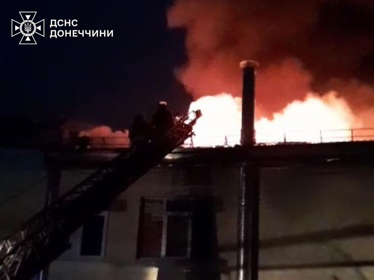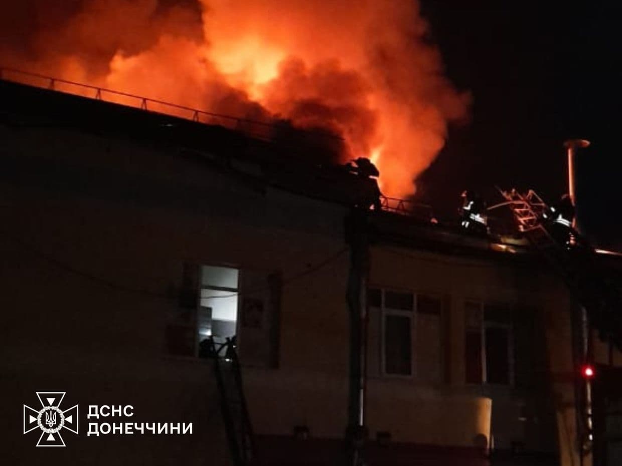 Так, ворог обстріляв Дружківку, внаслідок чого виникла пожежа в адміністративній будівлі, що не функціонує. Рятувальники ліквідували загоряння покрівлі будівлі на площі 750 кв. м.