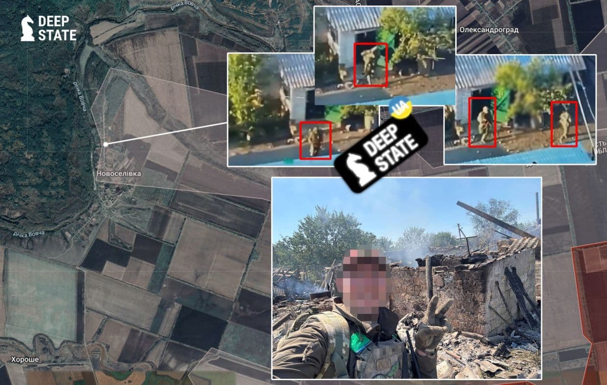 "СОУ ліквідували основну частину кацапів, яка прорвалася у Новоселівку. Ще позавчора ми фіксували там щонайменше 4 кацапів, а вчора бійці Сил оборони вже скинули фото свого побратима біля розбитих приміщень, де ще позавчора ховалися кацапи", — зазначили аналітики.