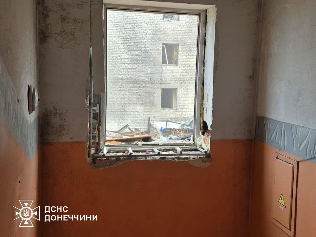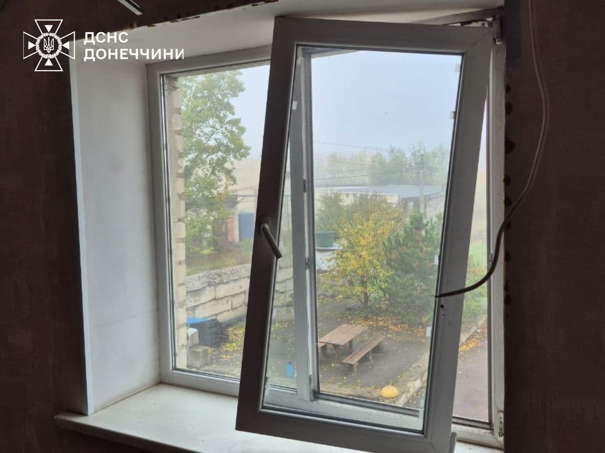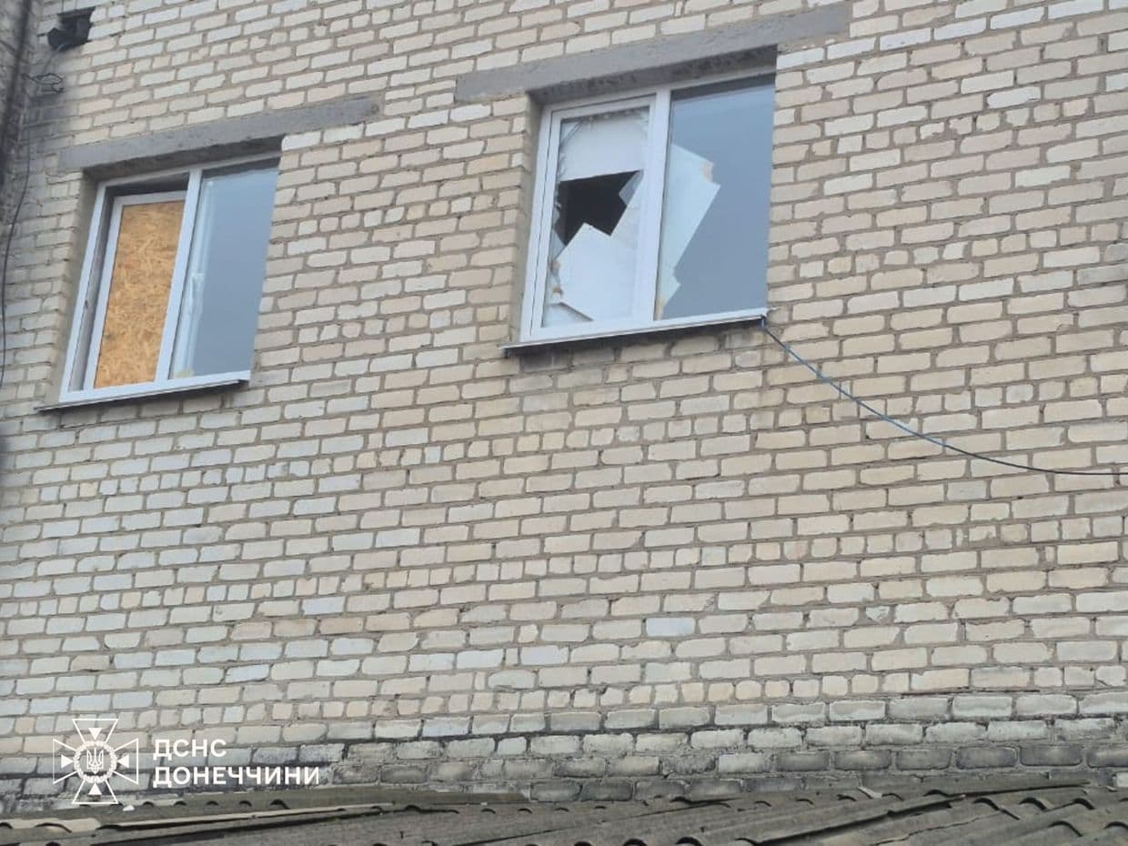 Сьогодні вранці ворог завдав авіаудару по Добропіллю. Внаслідок атаки зазнала пошкоджень будівля пожежно-рятувальної частини — вибуховою хвилею вибито вікна, пошкоджено двері та стелю.