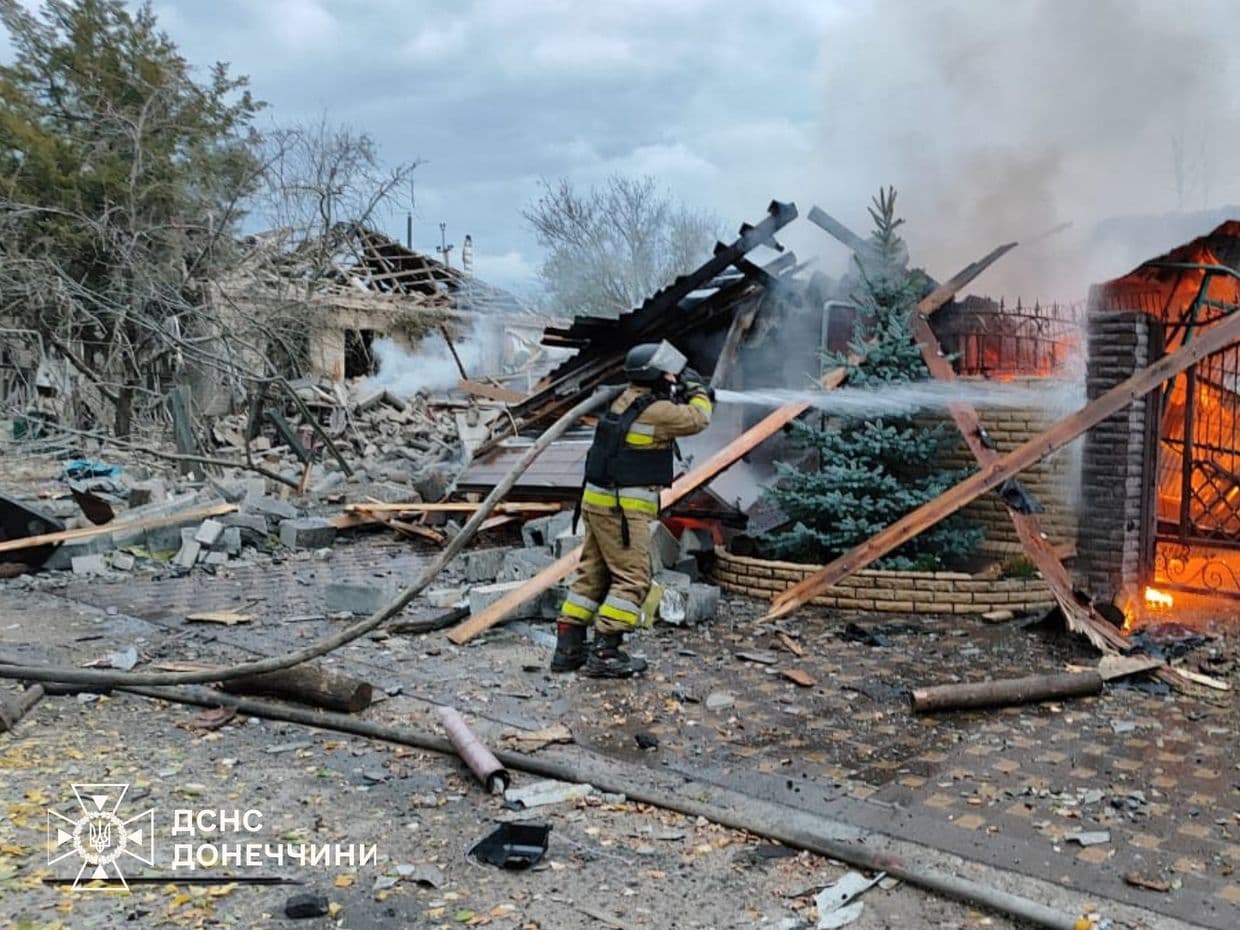 Гасіння пожежі, що виникла внаслідок російського авіаудару 16 жовтня 2025 року. Фото: ДСНС Донеччини