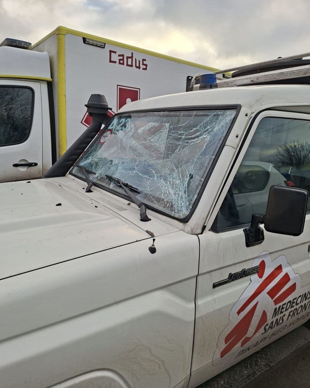 Уночі 4 грудня, під час масштабної повітряної атаки російських військових на Слов'янськ, за кілька метрів від будинку персоналу "Лікарів без кордонів" стався вибух. Він дуже пошкодив будівлю, 2 автомобілі "Лікарів без кордонів", а також автівку "швидкої" допомоги партнерської організації Cadus.