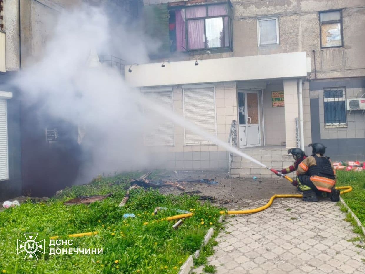 Наслідки російського дронового удару по Дружківці 23 квітня 2026 року. Фото: ДСНС Донеччини