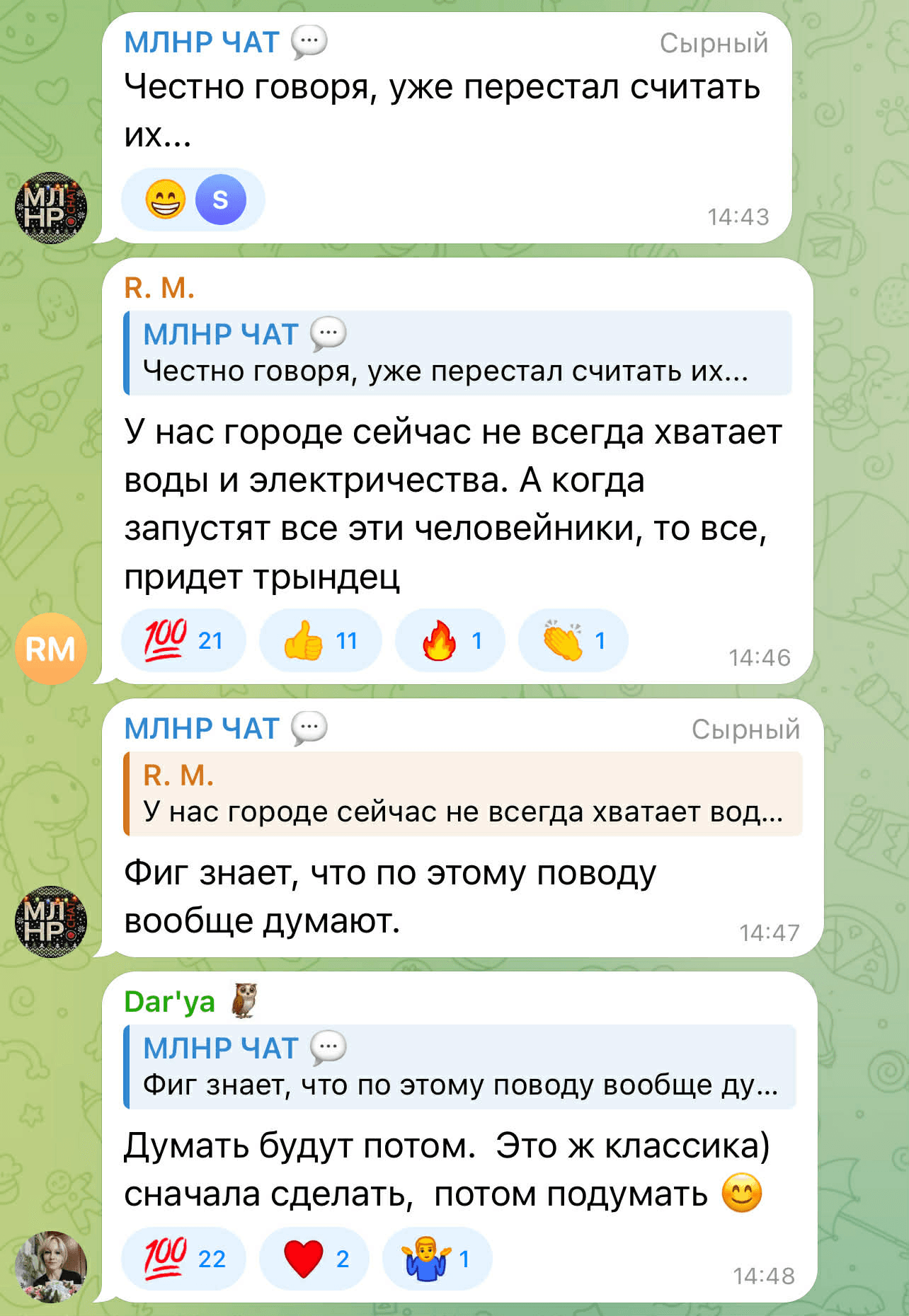 В Телеграм цю новину обговорюють, припускаючи, що такі "новобудови" ще більше посилять транспортні колапси і проблеми з водопостачанням на ТОТ Луганщини.