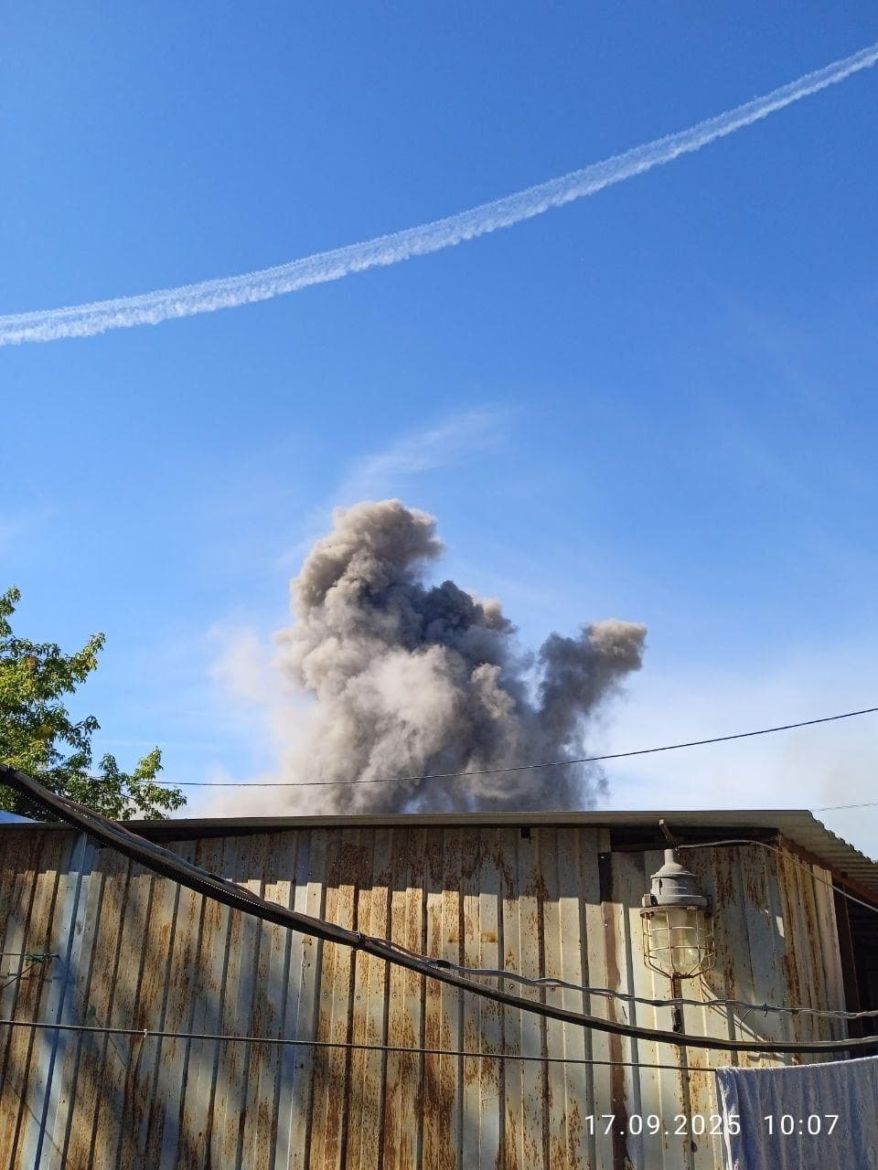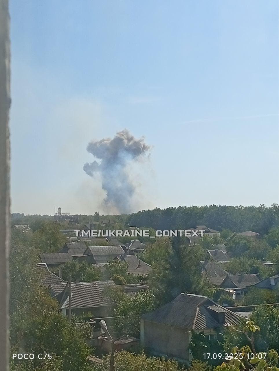 Дим від вибуху в окупованому Донецьку 17 вересня 2025 року. Фото: Telegram/Ukraine context