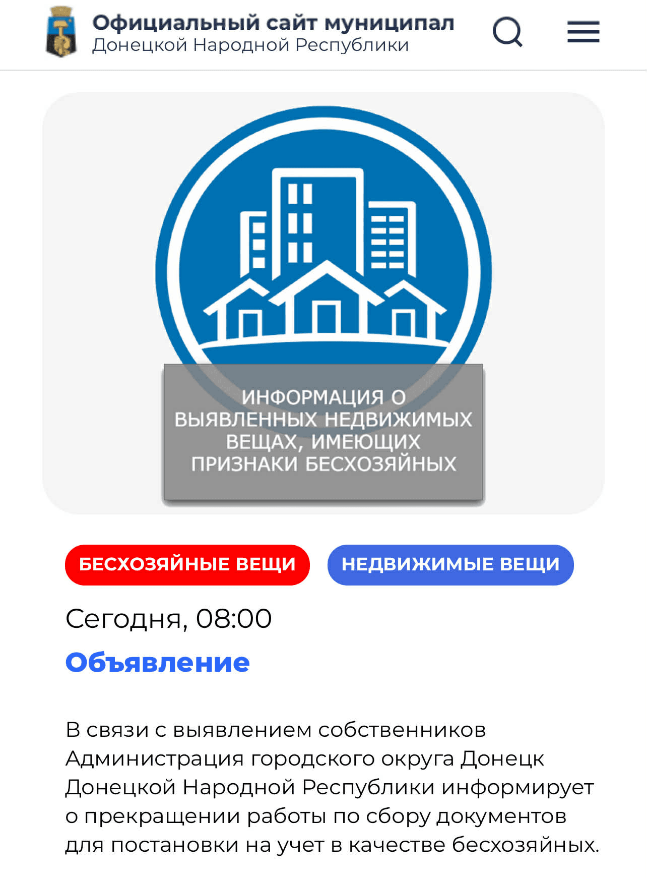 Також окупанти начебто надають "перелік нерухомих об'єктів, що мають ознаки безгосподарних", з якими вони пропонують "ознайомитися на так званому "сайті муніципального утворення міський округ Донецьк".