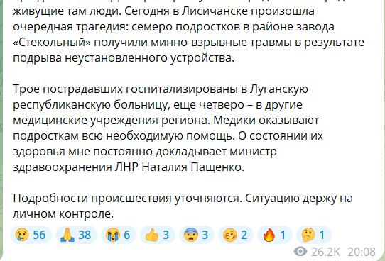 Сьогодні в Лисичанську семеро підлітків травмувалися на вибуховому пристрої