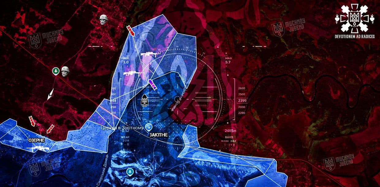 Паралельно ворог намагається розвивати тиск з боку Ямполя в напрямку Закітного. Ключовий момент тут — логістика через річку.