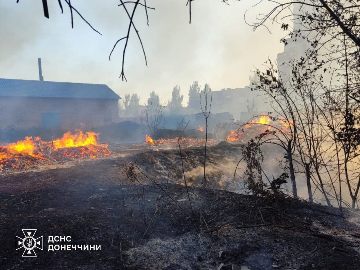 Учора, 11 вересня, ворог завдав удару по місту Добропілля. Внаслідок атаки загорілися металевий вагон, дерев'яний паркан і суха трава.