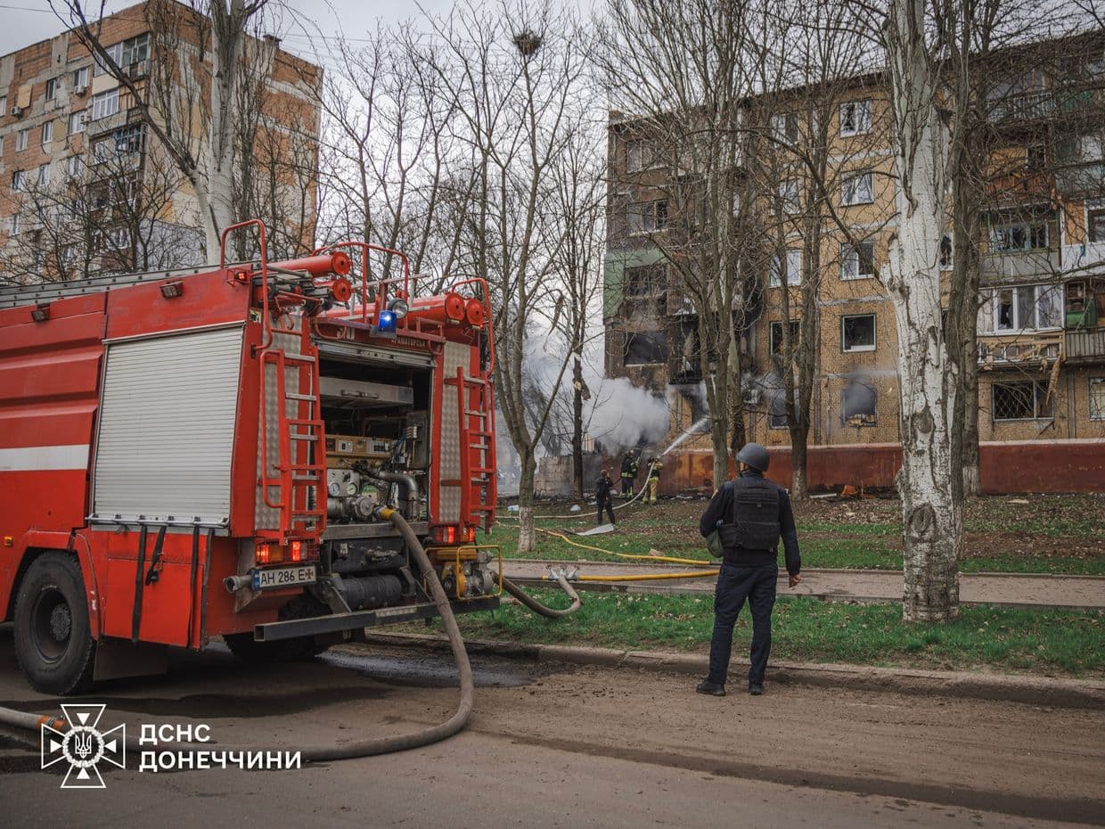 Ліквідація наслідків російської дронової атаки на Краматорськ 1 квітня 2026 року. Фото: ДСНС Донеччини