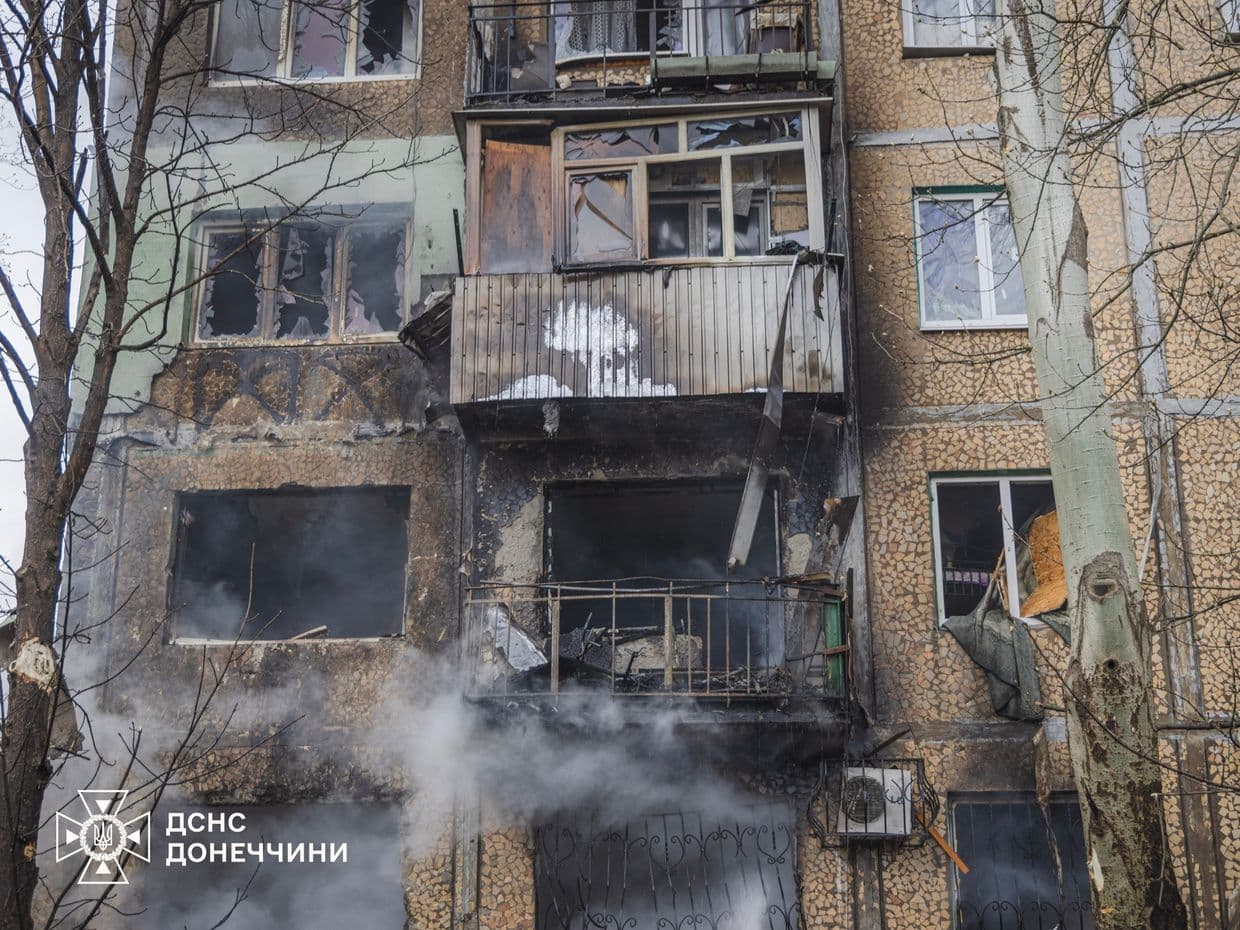 Вогнеборці показали, як гасили пожежу в 5-поверхівці після дронової атаки на Краматорськ (фото, відео)