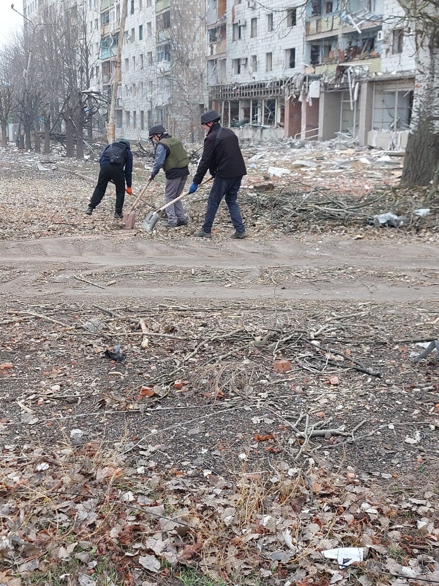 Зазначається також, що комунальні служби невпинно працюють: прибирають уламки будівель, залишки ворожих ракет та повалені дерева, відкриваючи гуманітарні маршрути для евакуації цивільних мешканців, поранених і загиблих.
