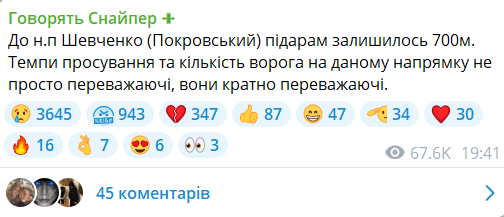 "До н.п Шевченка (Покровський) окупантам залишилося 700 м. Темпи просування та кількість ворога на даному напрямку не просто переважаючі, вони кратно переважаючі", — заявив командир.