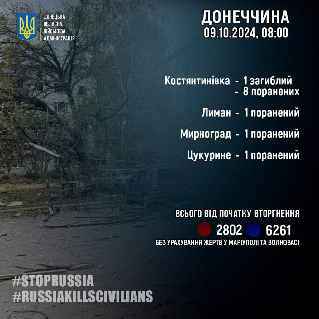 Ще 11 людей в області за добу дістали поранення: у Костянтинівці, Лимані, Мирнограді та Цукуриному.