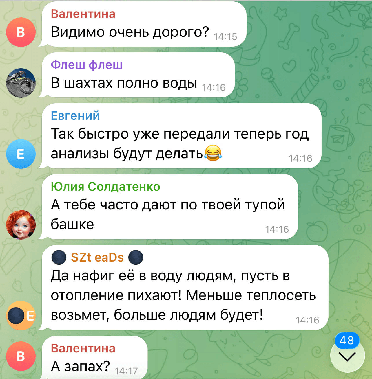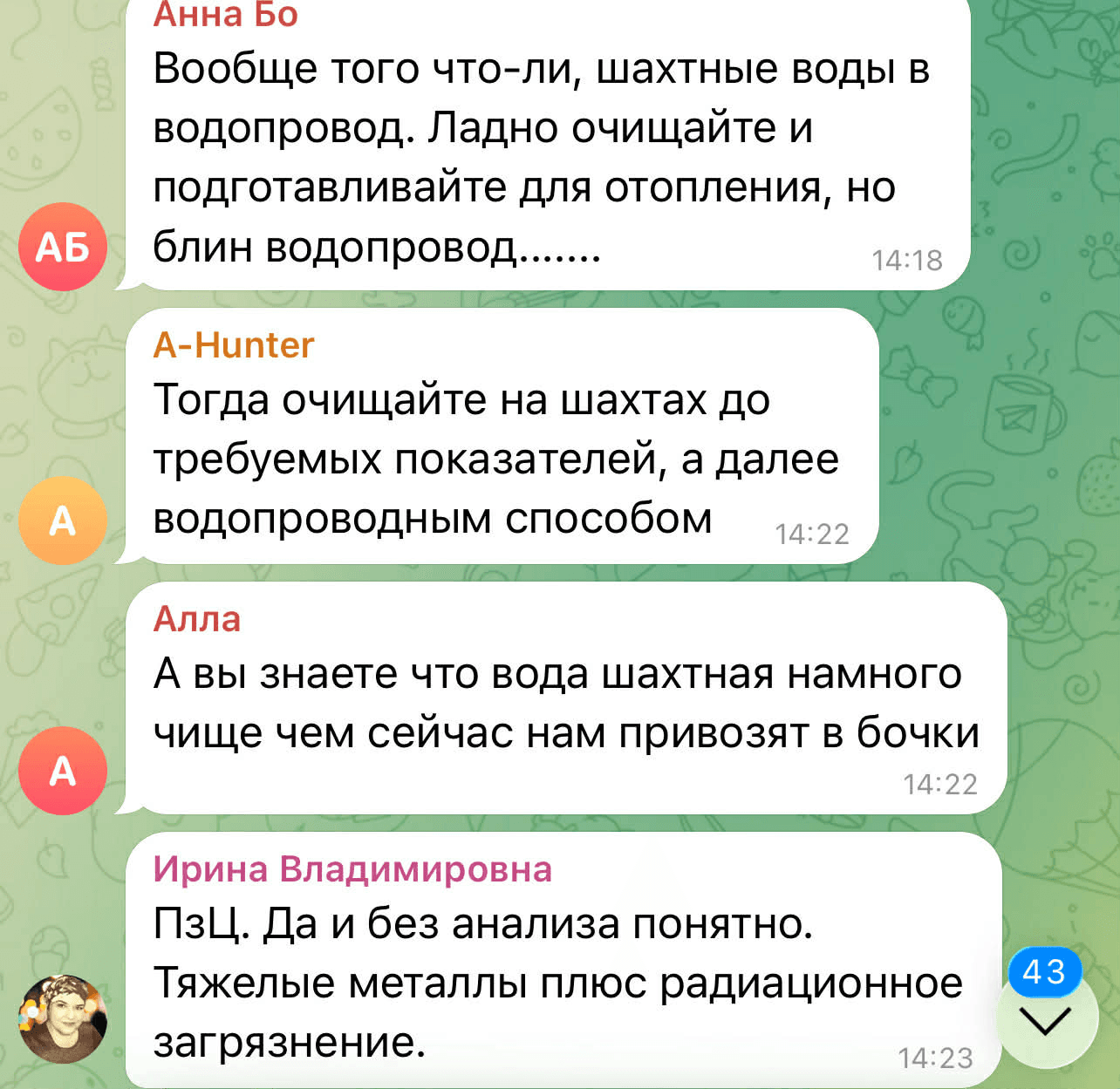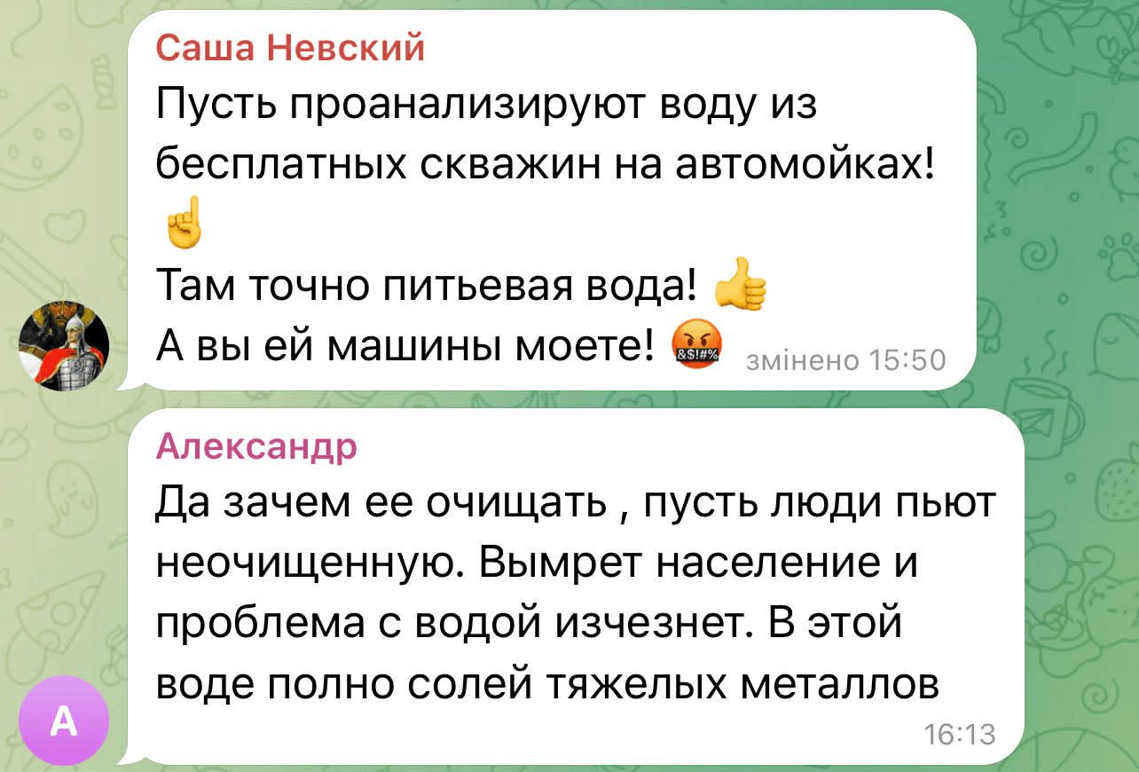 У коментарях до новини в Телеграм люди не зраділи такій "перспективі" з водою і обговорюють небезпечність та токсичність такого "водопостачання".