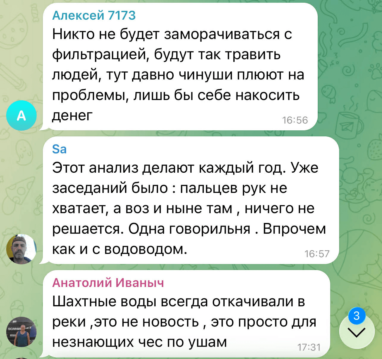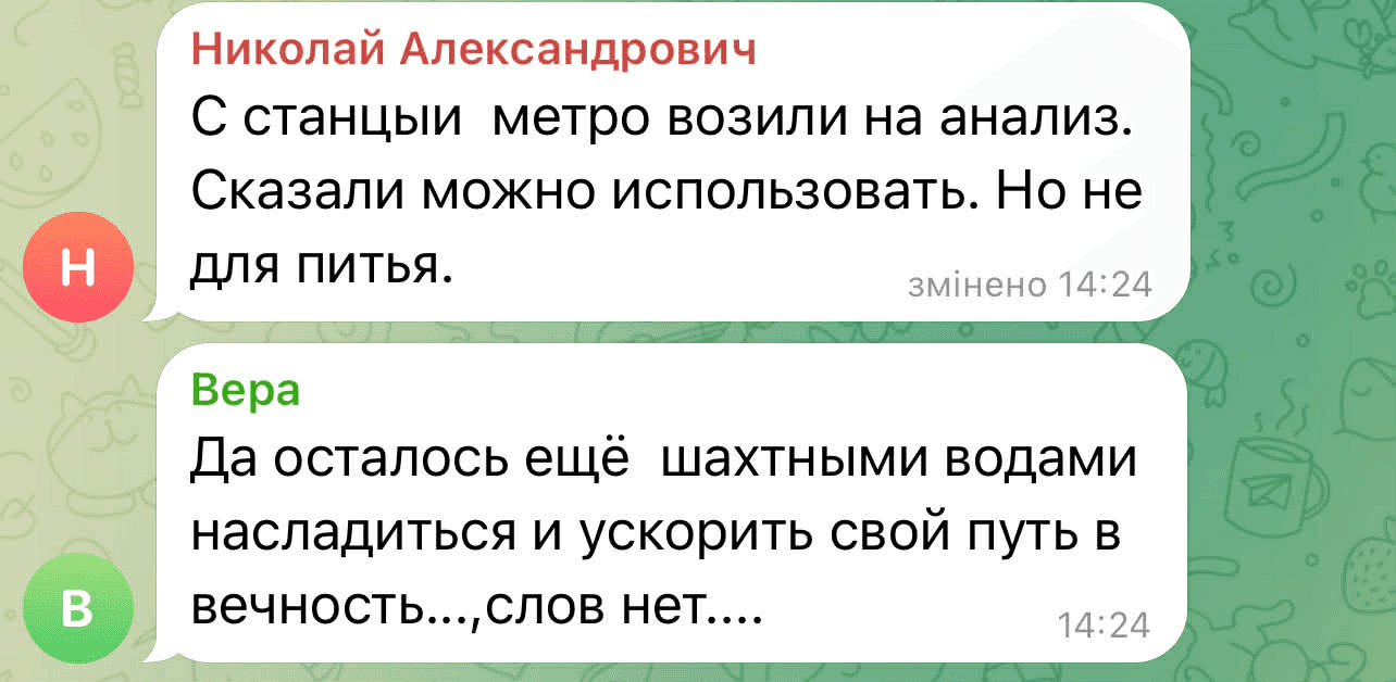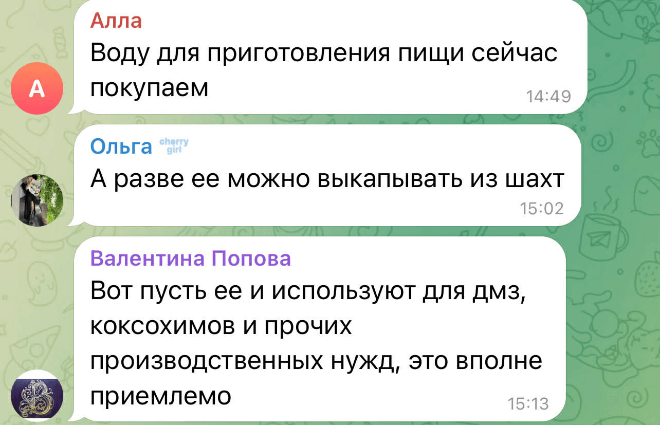 У коментарях до новини в Телеграм люди не зраділи такій "перспективі" з водою і обговорюють небезпечність та токсичність такого "водопостачання".