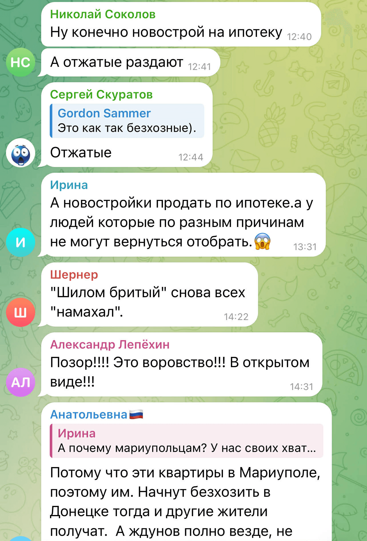В Телеграм обговорюють цю новину, користувачі називають такі дії крадіжками майна та зазначають, що історій з "безгосподарчим" майном, навіть при власниках на ТОТ дуже часте явище.